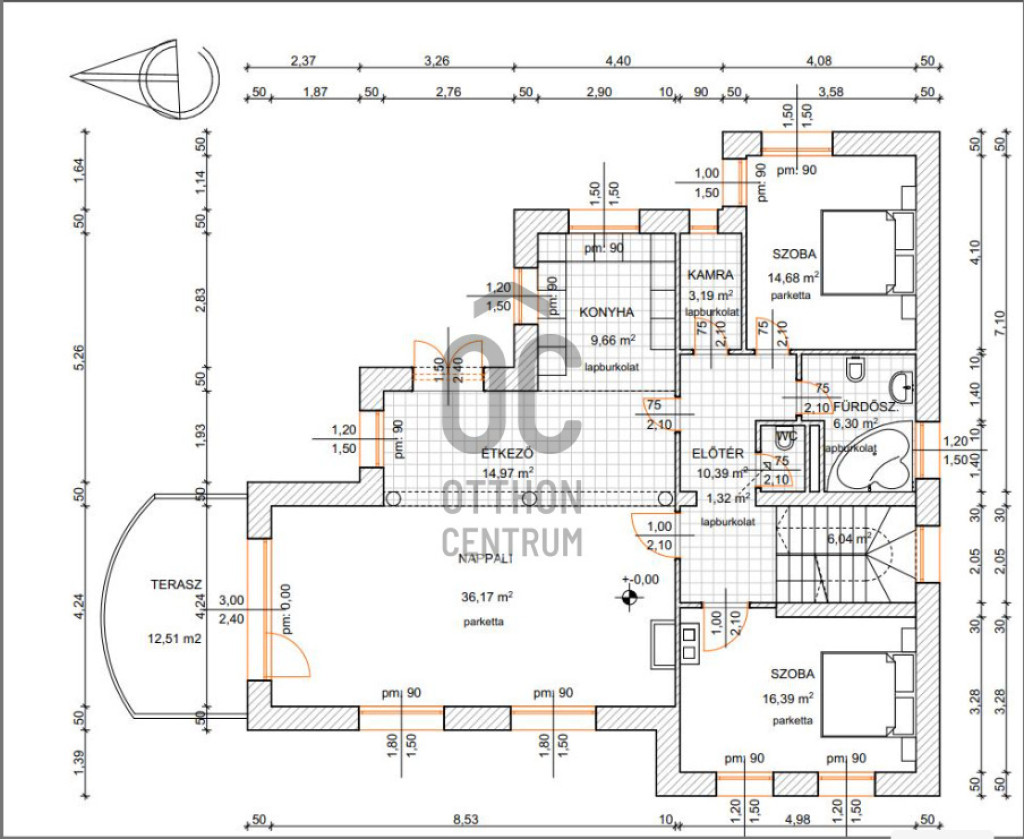 Ház összesen 366,35nm, ebből a lakótér kettő szinten: 219.95nm