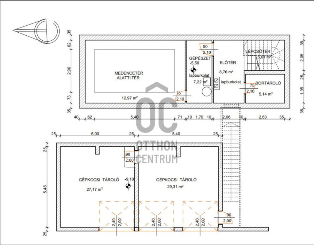 Plusz a 3 kocsinak a garázs: 56,48nm