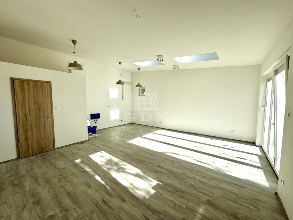 Jelenleg egy tágas, 37 nm-es, amerikai konyhás nappaliból áll, amelyet két különleges felülvilágító ablak tesz egész nap világossá.