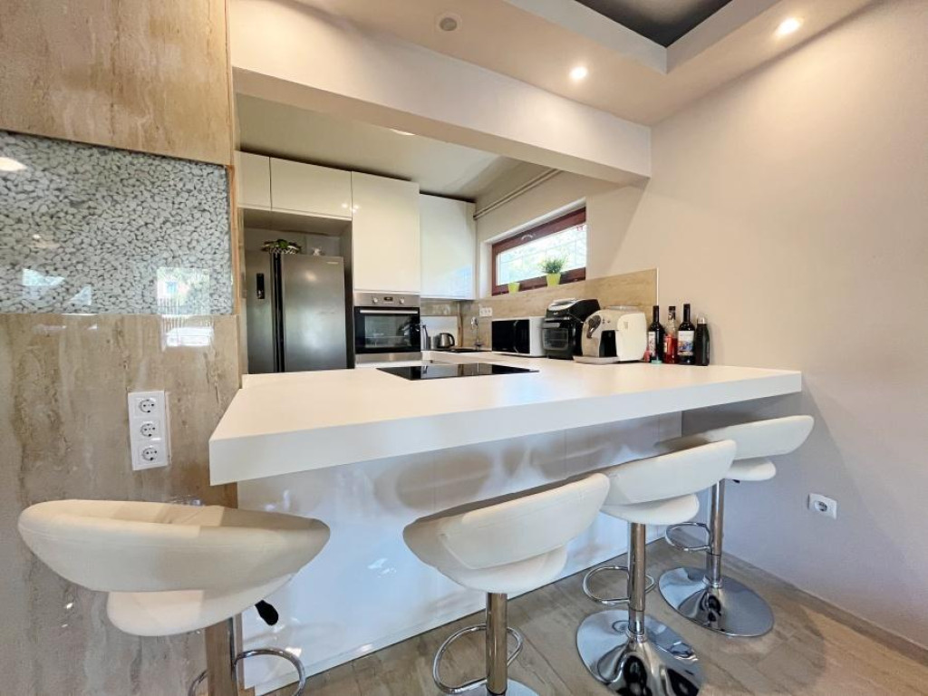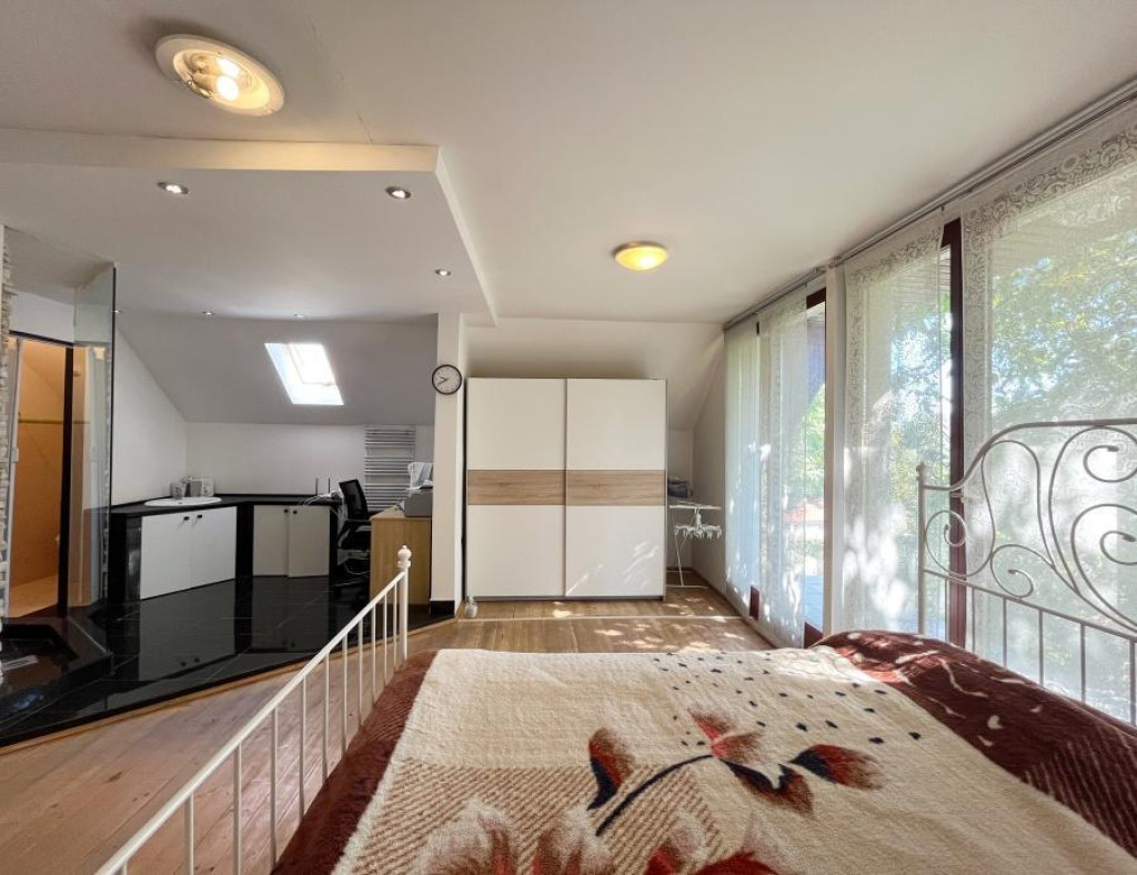 Az 537 m2-es telken található egy különálló, szintén tégla építésű, 15m2-es kis ház, amelyben szoba és fürdőszoba kapott helyet, és ugyancsak 20 cm-es szigeteléssel rendelkezik, kiváló lehetőség vendégházként, irodaként vagy akár kiadásra.