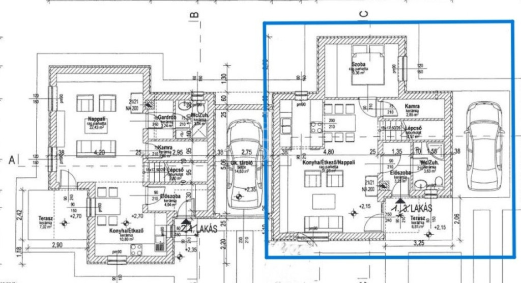 - nappali + étkező 31,03 m2,