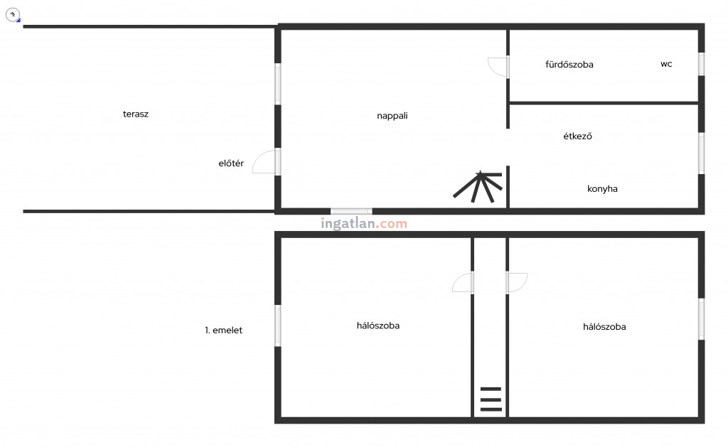 A 64 m²-es, barátságos és világos ingatlan gondos családi építés eredménye, amelyet az évek során folyamatosan karbantartottak és ápoltak. Az alsó szinten jó elosztású közösségi terek, valamint egy nagy, fedett terasz biztosítanak teret a pihenéshez és családi, baráti összejövetelekhez. Az emeleten két kényelmes hálószoba található, amelyekből nyugodt, természetközeli kilátás nyílik.