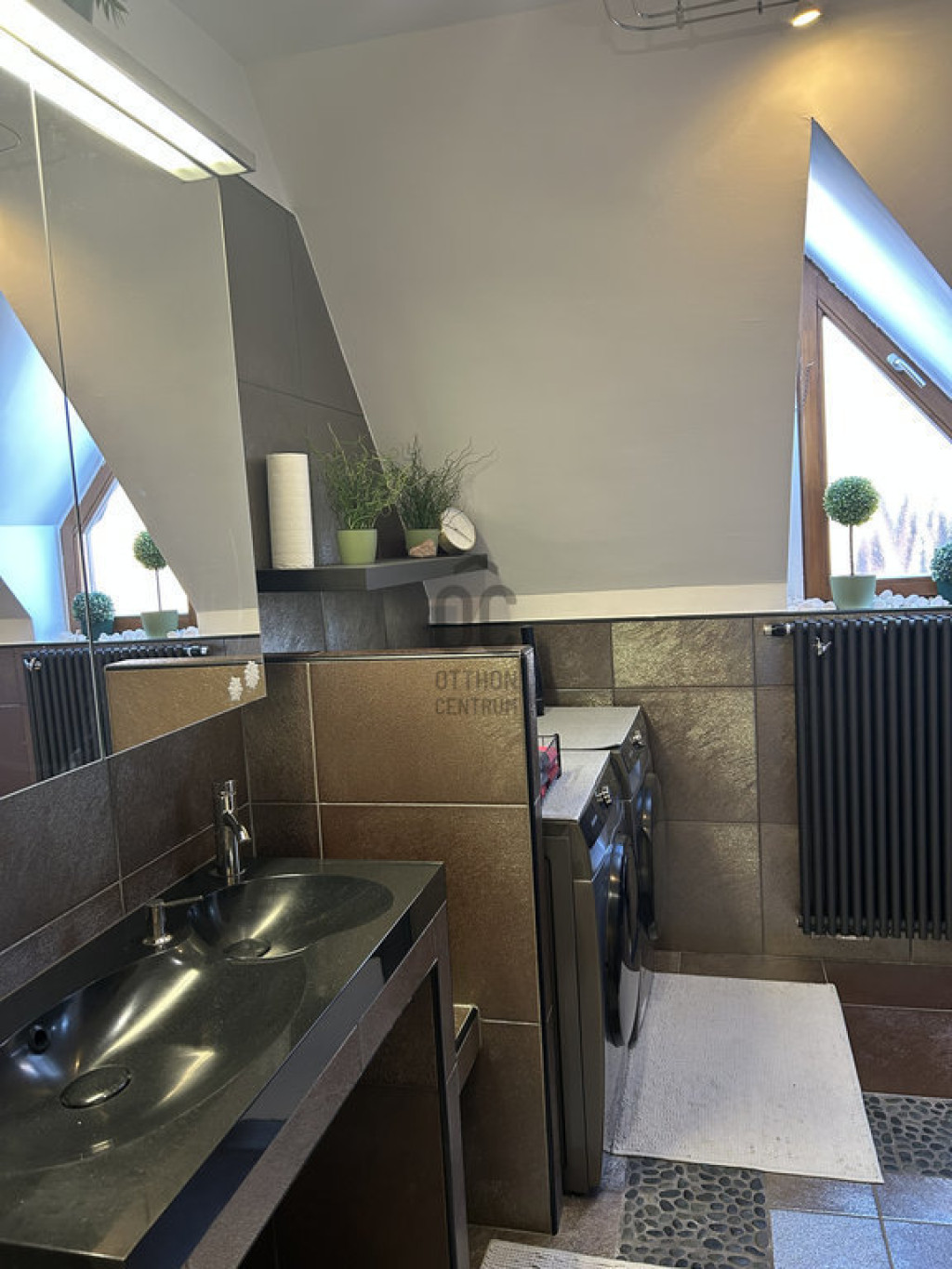 Mivel a belső kétszintes ház, mind a két szintjén van fürdőszoba, így a reggeli készülődés is zökkenőmentesebb.