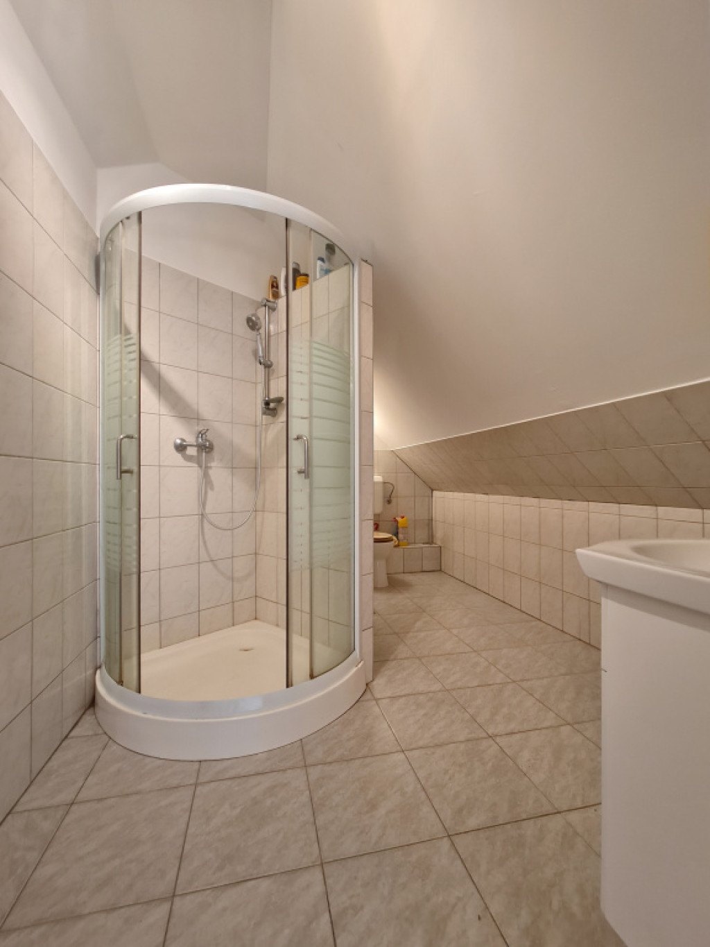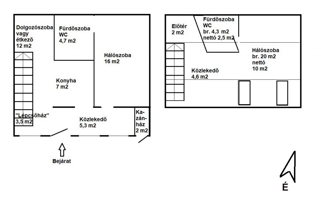 A lakás összesen 79,4 m²-es valós alapterülettel rendelkezik, amely nettó 53 m²-t jelent, de a terek kihasználtsága és a tetőtér beépítése miatt jóval tágasabbnak érződik. A földszint 48,5 m², a tetőtér bruttó 30,9 m², nettó 14,5 m², így a lakás ideális lehet pároknak, kis családoknak vagy akár két generáció számára is.