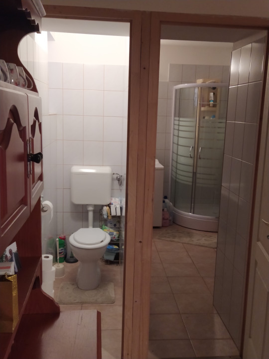 Fürdőszobában kád és zuhany kabin is van. WC külön helyiségben.