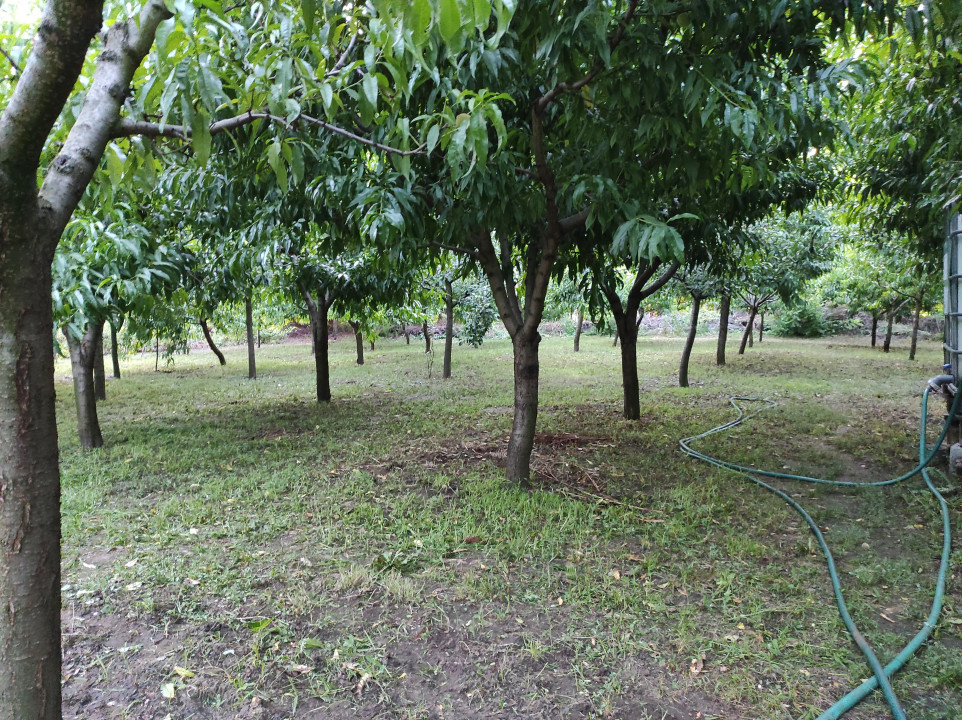 Hátul gyümölcsös, többféle termő fákkal (őszibarack, sárgabarack, meggy, álma, körte, ringló szilva, vörös szilva,) konyha kerttel. Van gyűrűskút is, a kert locsolásához.
