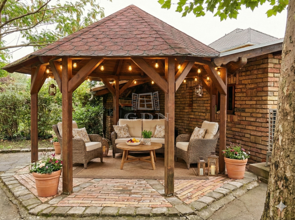Biztonság és kényelem: kiépített riasztó- és kamerarendszer védi az otthont. Elektromos kapu szolgálja a további kényelmet.