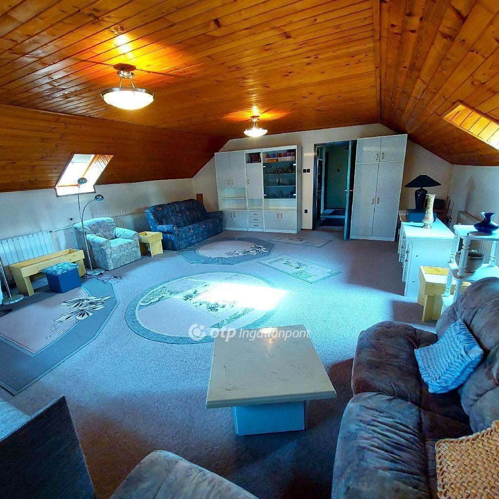 Az épület földszintjén egy tágas és modern kialakítású amerikai konyhás nappali, fürdőszoba wc-vel, közlekedő, mosókonyha, lépcsőház és kamra, az emeleten 1 szoba, 3 félszoba, közlekedő, fürdőszoba WC-vel, előtér és lépcsőház került kialakításra. A fűtött duplagarázs az épületből is megközelíthető, mely kényelmes parkolási lehetőséget biztosít, és akár műhelyként is használható. Élelmiszerbolt 1,5 km, a Gyógy- és Strandfürdő 1,8 km, buszmegálló 350 m, vasútállomás 1,9 km távolságra található. A városközpont 5 perc autóúttal elérhető.