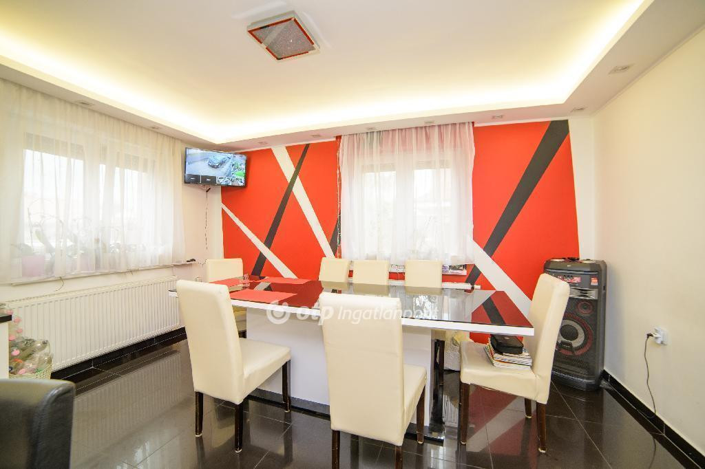 Az ingatlan négy- és félszobás, kétszintes, modern, tágas terekkel rendelkező, minden kényelmi igényt kielégítő, jól felszerelt. Az 1992-ben épült otthon falazata tégla, 15 cm-es szigeteléssel, új műanyag nyílászárókkal, melyek elektromos redőnnyel és szúnyoghálóval felszereltek, a tetőzete cserép.