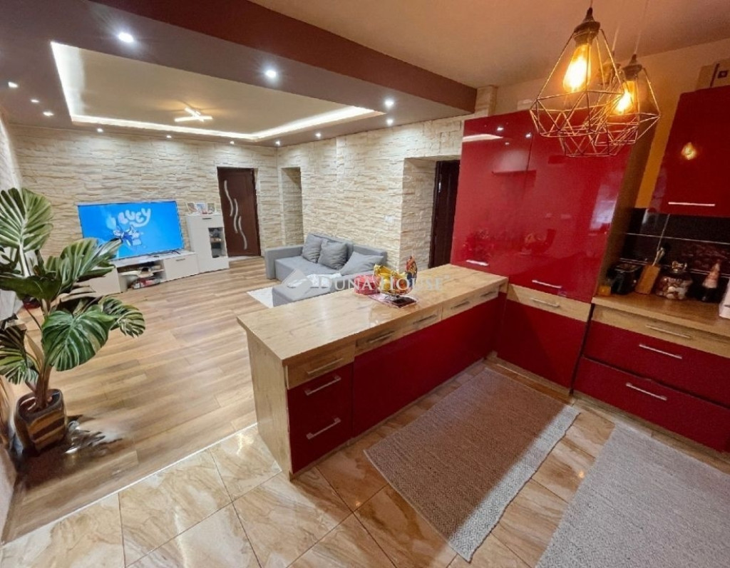 A házba egy tágas előtéren keresztül jutunk be, innen nyílik az étkező, majd az amerikai konyhás nappali. Két nagyobb és egy kisebb hálószoba, valamint egy fürdőszoba van még a beltérben kialakítva. A fűtött lakótér 130 m2. 2020-ban egy nagyobb felújítás során lett kiépítve a gázfűtés, cserélve lettek a víz- és villanyvezetékek, megújultak a szaniterek és burkolatok, valamint a gépesített konyha. Ezen kívül szigetelve is lett a ház. A nyílászárók és a tető egy korábbi felújítás során lettek cserélve. Alternatív fűtésnek egy vegyes tüzelésű kazán is rendelkezésre áll. Az utcafront felől, kétállásos fedett gépkocsi beálló biztosítja a parkolást (32 m2).