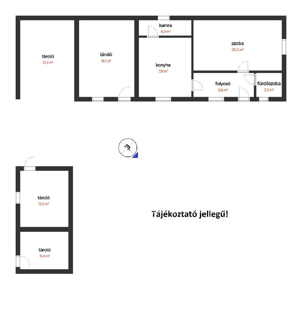 Az ingatlan helyiségei: szoba, konyha, fürdőszoba, folyosó és kamra. A ház igény esetén hátrafelé bővíthető. A fűtés jelenleg kályhákkal megoldott.
