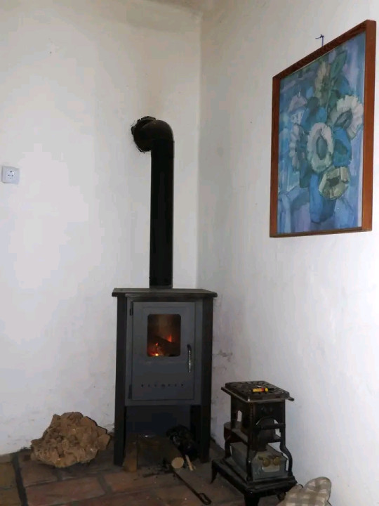 Összesen 5 helyiségben van kéménycsatlakozás fatüzelésű kályhák számára, ezek közül az egyik a raktárhelyiségben található, ahonnan fa lépcső vezet fel a padlásra.