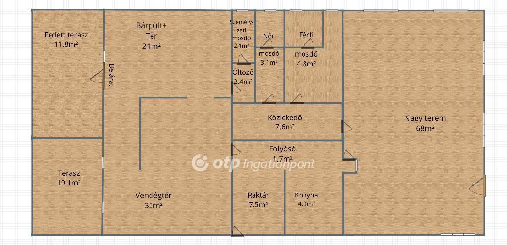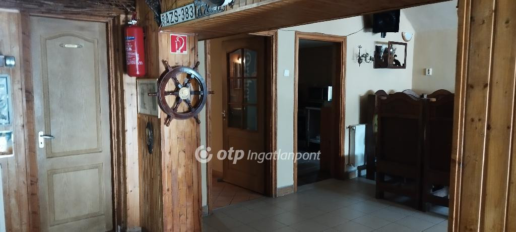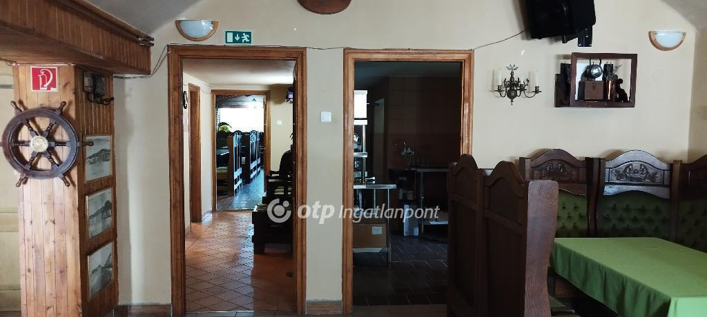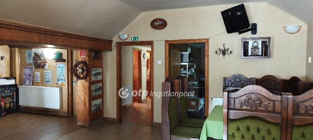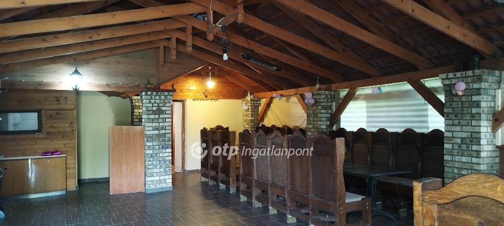 A hozzá tartozó üzlethelyiség korábban vendéglőként és sörözőként működött, és a benne található, kézzel készített, kiváló állapotú bútorok az ingatlan részét képezik - ezek tökéletesen illeszkednek a hely hangulatához. Elöl egy fedett és egy nyitott terasz is található, ami ideális szabadtéri vendéglátásra. Az épületben elől található egy vendégtér bárpulttal, konyha raktárral, egy személyzeti mosdó, valamint egy külön közlekedőfolyosó, ami összeköti a vendégteret és a rendezvénytermet, és innen érhetők el a női és férfi vendégmosdók. A vendéglő három külön bejárattal is rendelkezik, ami nagyfokú rugalmasságot biztosít az új tulajdonos számára.