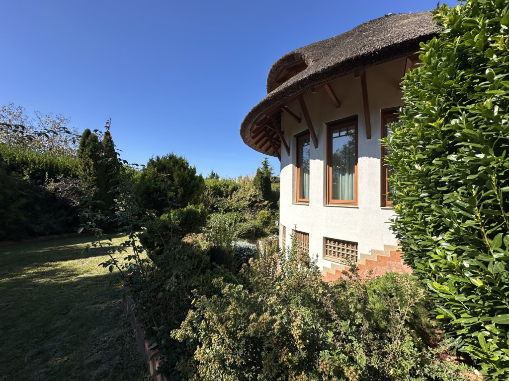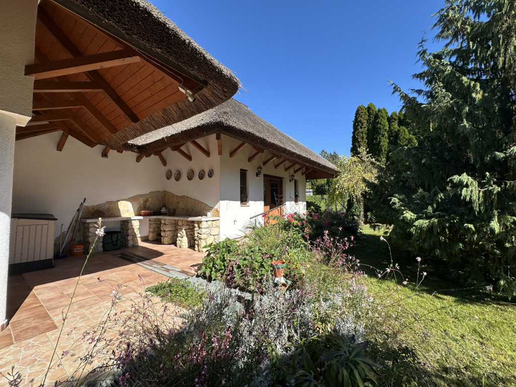Ez a gyönyörű villa az elegáns otthonosságot egy romantikus, rendkívül gondozott, tágas kerttel ötvözi – tökéletes, bájos és stílusos visszavonulási hely. A ház hagyományos nádtetővel rendelkezik, és mindhárom szinten igényes felszereltséggel várja új tulajdonosát.