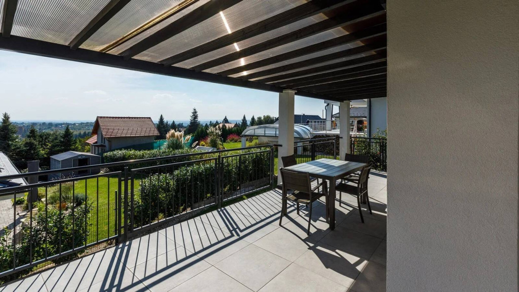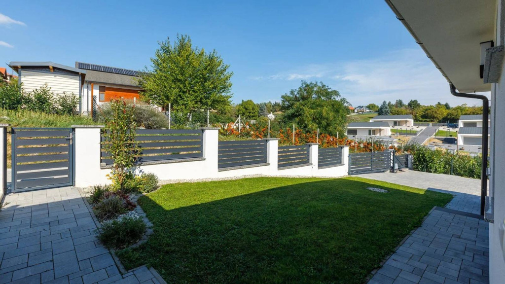 A ház egy teljesen körbekerített 780 m²-es, parkosított telken található. A 106 m²-es lakótér világos, arányos helyiségekből áll, ahol minden részlet a kényelmet szolgálja. A tágas amerikai konyhás, étkező-nappali és a hozzá tartozó óriási terasz, a családi élet természetes központja, míg a három hálószoba nyugodt, intim teret biztosít a pihenéshez. A nagy üvegfelületek nemcsak bőséges természetes fényt engednek be, hanem lenyűgöző kilátást is nyújtanak a környező tájra, amely évszakról évszakra új arcát mutatja.