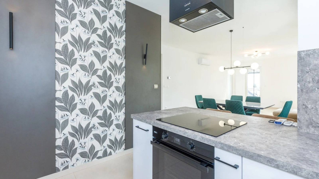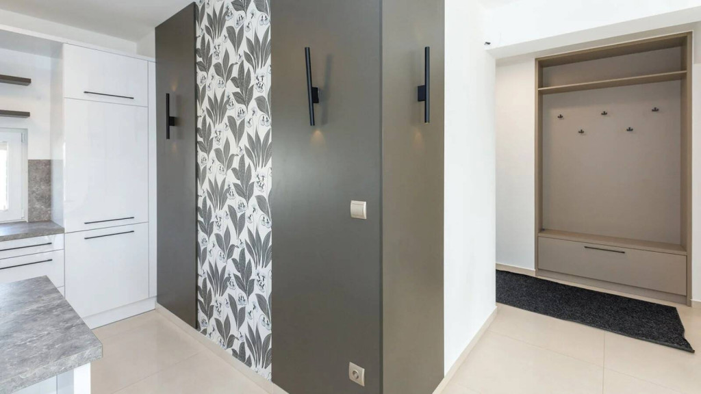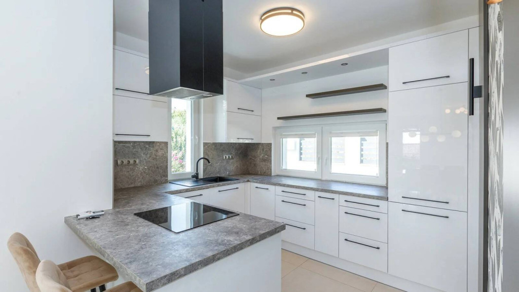 A zuhanyzóval és káddal felszerelt, ablakos fürdőszoba valódi privát wellness élményt kínál: egy hely, ahol a nap végén meg lehet állni, elcsendesedni és feltöltődni. A gondosan megtervezett beépített konyha egyszerre funkcionális és esztétikus, ideális tere a közös főzéseknek és a meghitt beszélgetéseknek.