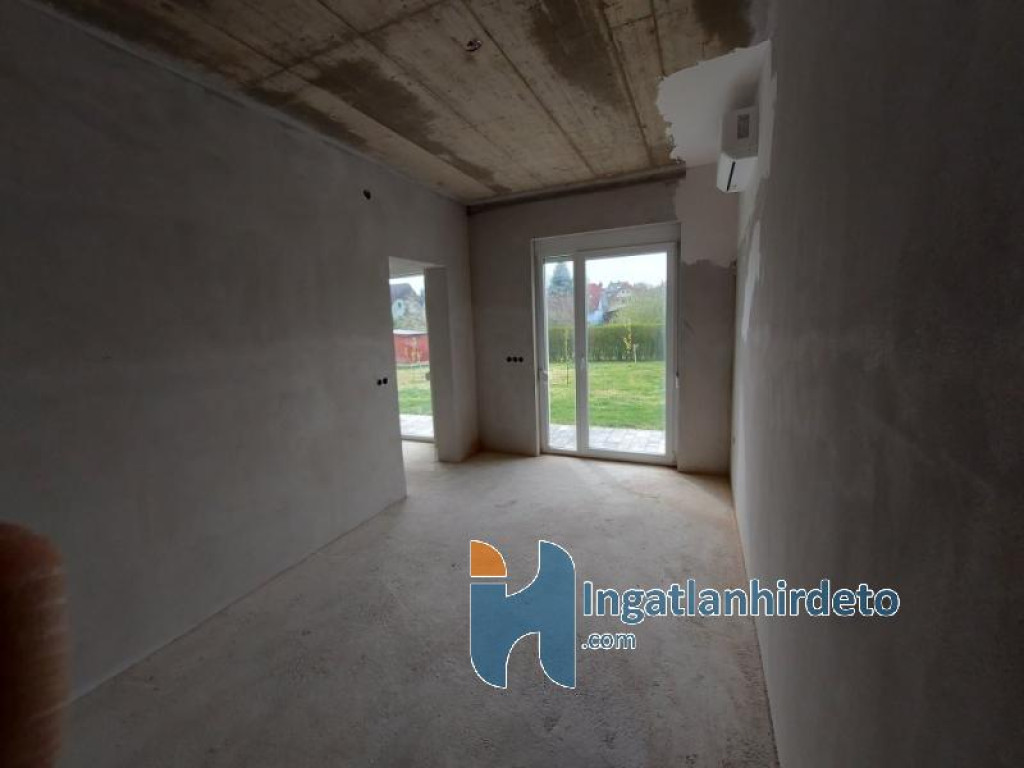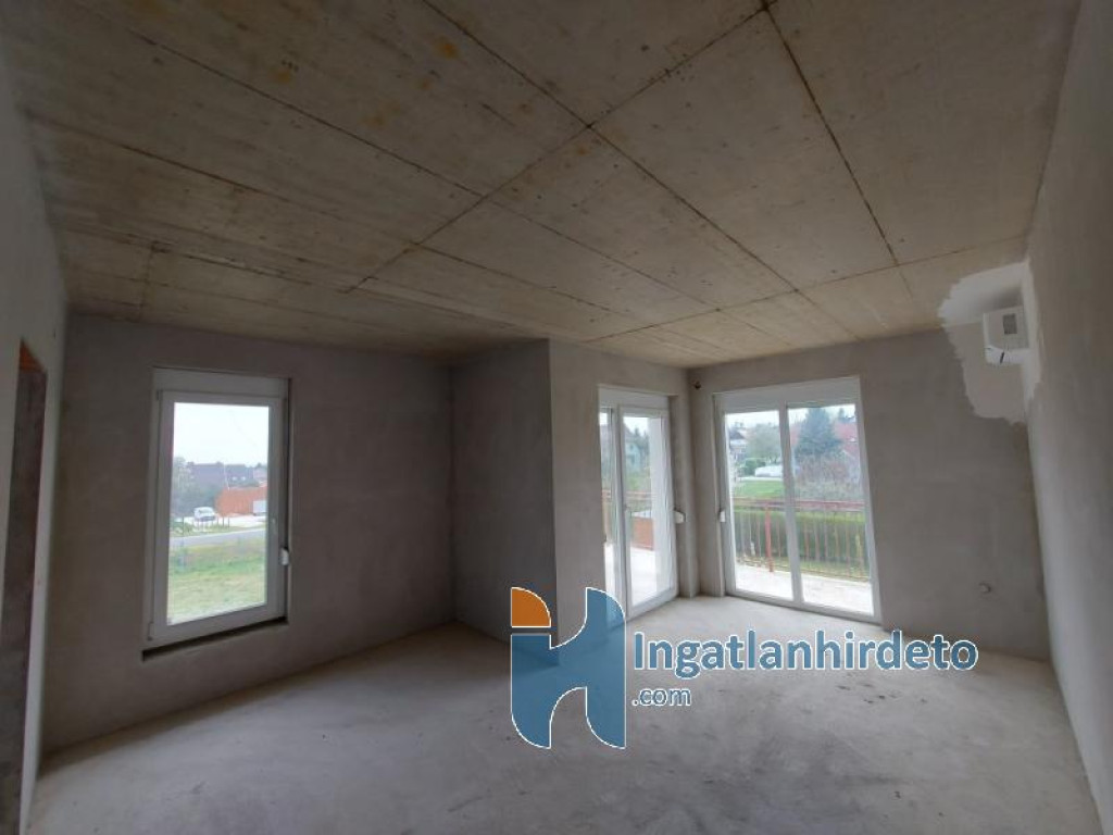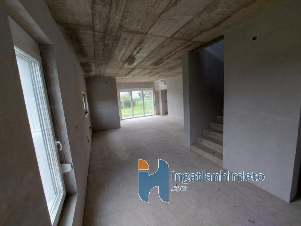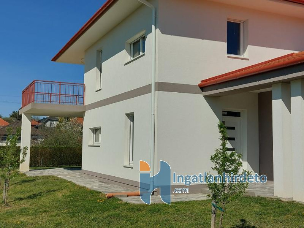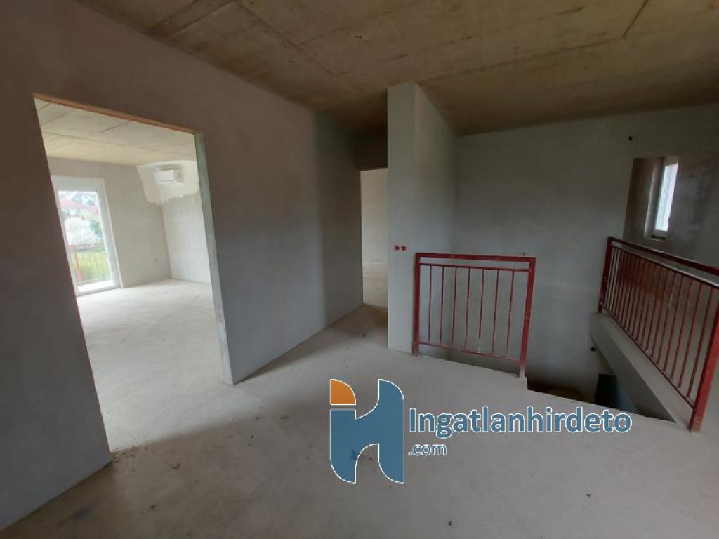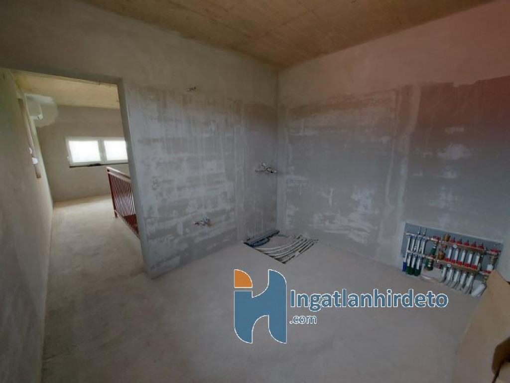 A nappaliban kandallós fűtésre is van lehetőség, akár az egész épület padlófűtésére használható módon. Földszint előszoba-nappali-konyha-étkező egy légtérben, hálószoba saját fürdővel, külön bejáratú Wc, gépészeti helyiség. Emelet tágas előtér, két nagyméretű hálószoba, nagy fürdőszoba Wc-vel. Földszinten nagy étkező-nappali kapcsolatos terasz, emeleten ugyan akkora méretű erkély került kialakításra. A földszinthez kapcsolódó garázs, és fedett kocsibeálló is készült. Az épülethez tartozó telek 1200 m2 alapterületű, ami mellett egy önálló öszközműves építési telek szintén eladó.