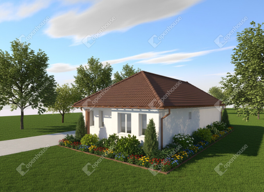 Elrendezése: 3 hálószoba és egy amerikaikonyhás nappali, mely közvetlen terasz és kertkapcsolattal rendelkezik. A terasz a maga 16nm-es méretével kiválóan alkalmas reggeli kávézásra, baráti kertipartik helyszínének. A ház dupla komfortos a 2 fürdőszobának köszönhetően, melyből az egyik fürdőkádas, a másik zuhanyzós fürdő. Gardrób és háztartási helyiség is helyet kapott a házon belül, így tágas tereket biztosítva a hálókban és a nappaliban.