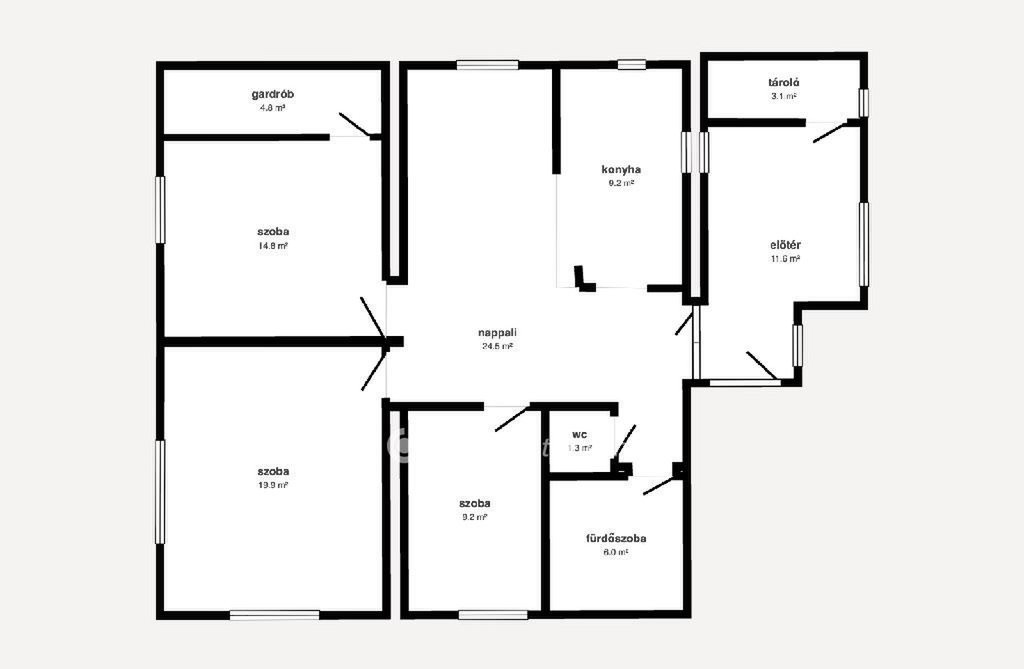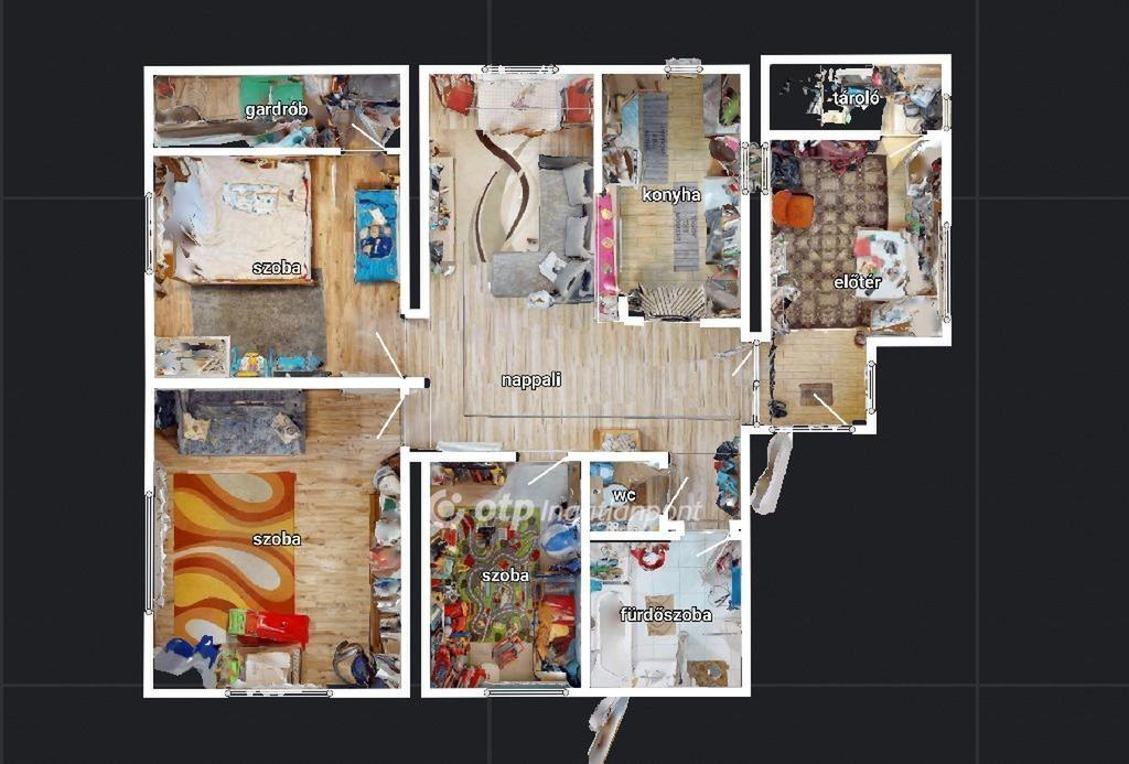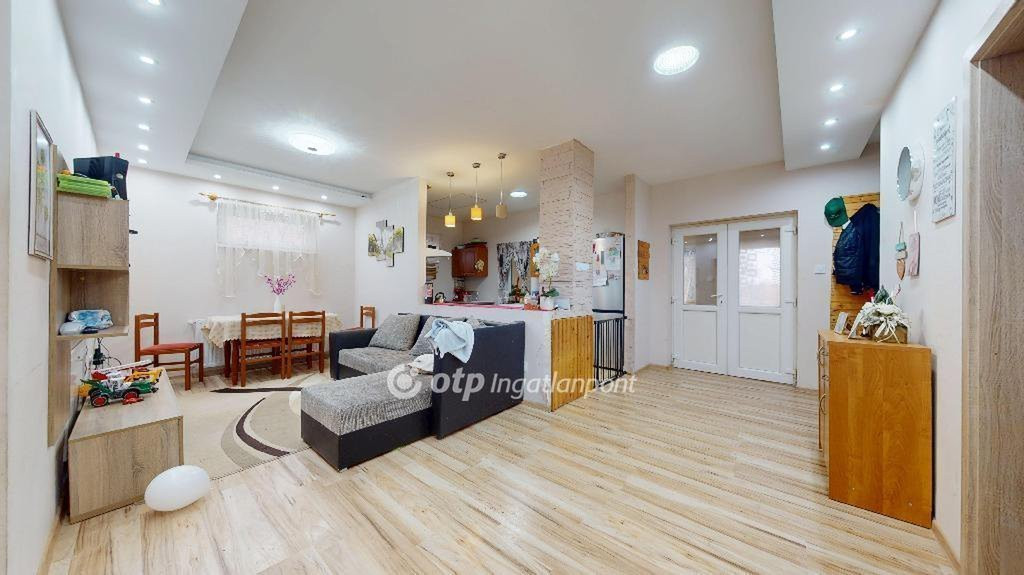 A burkolatok is igényesek és egységesek: a konyha, fürdőszoba, WC és a zárt terasz járólappal fedett, míg a lakótér többi részében meleg hatású laminált padló teszi otthonossá a tereket. Két tágas szoba, egy kisebb gyerekszoba, valamint egy külön kialakított gardróbszoba biztosítja, hogy minden családtagnak jusson saját tér.