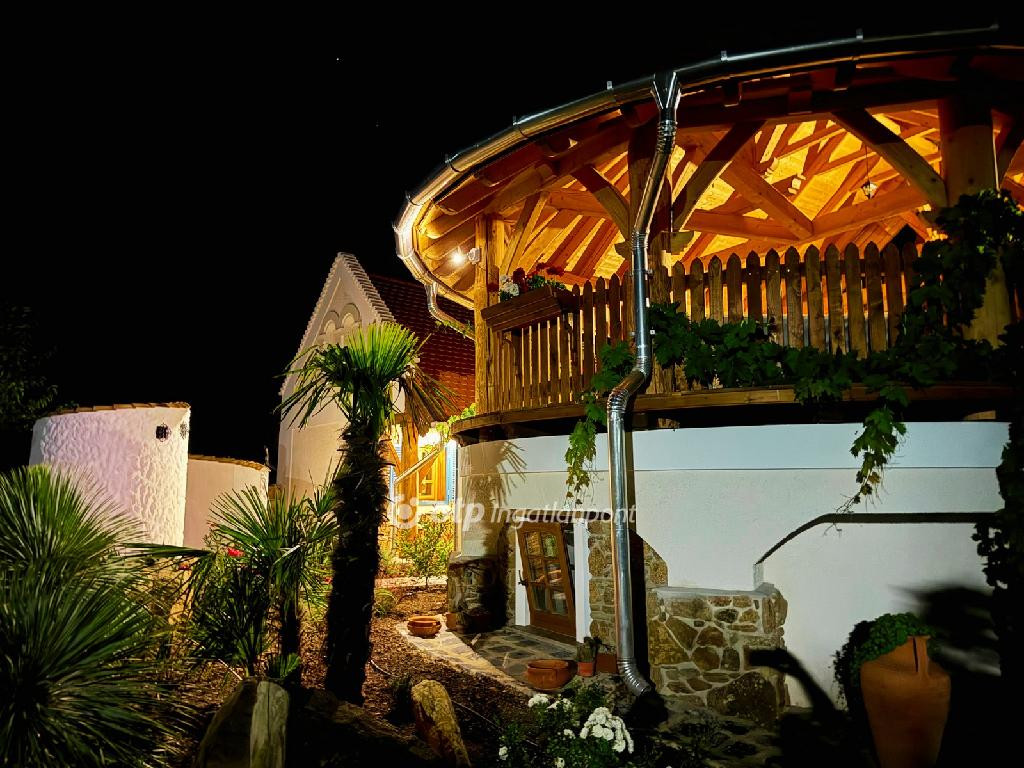 -balatoni panorámás, 45 m2-es tömörfa terasz, alatta kb. 40 m2-es pince