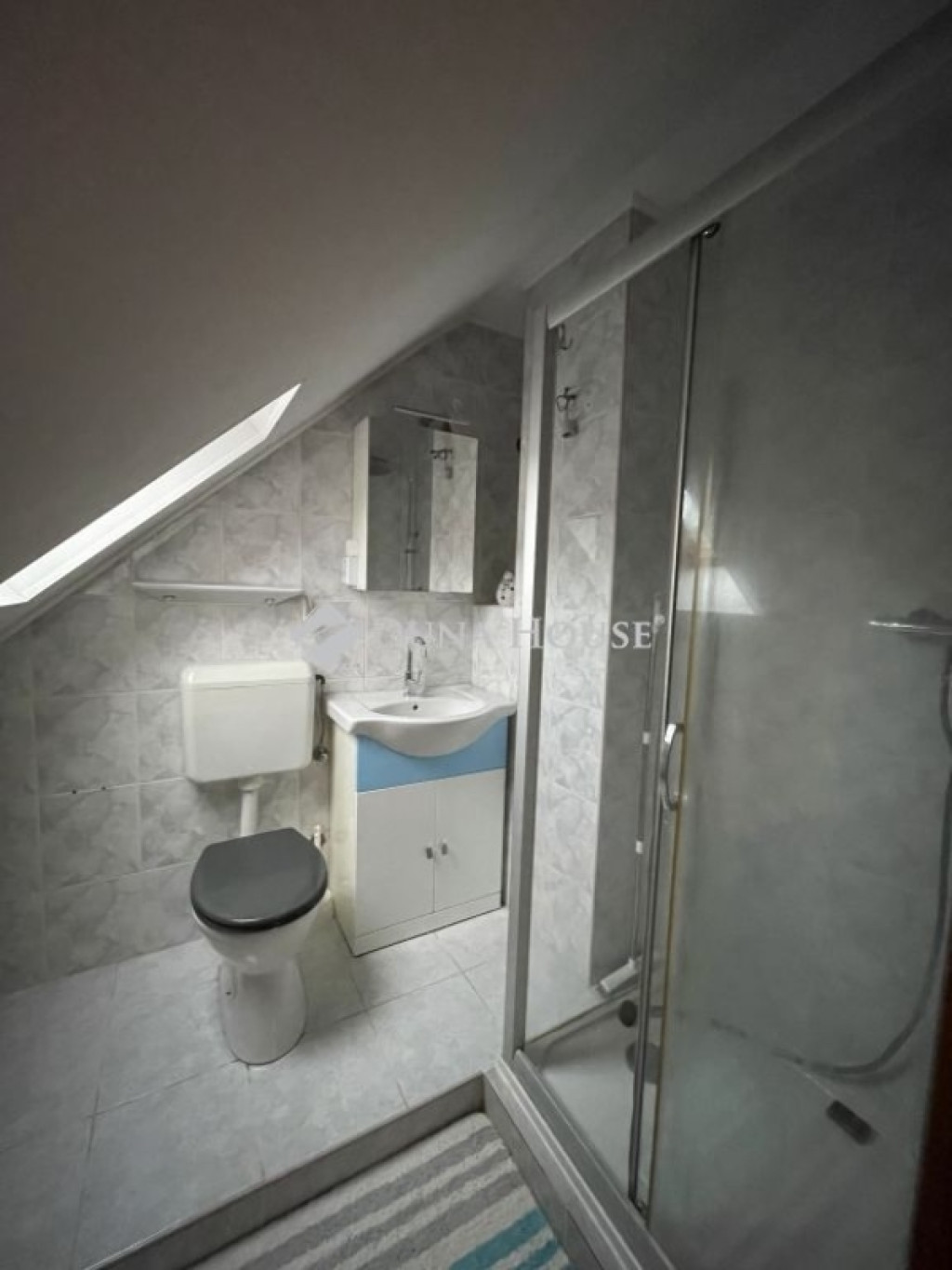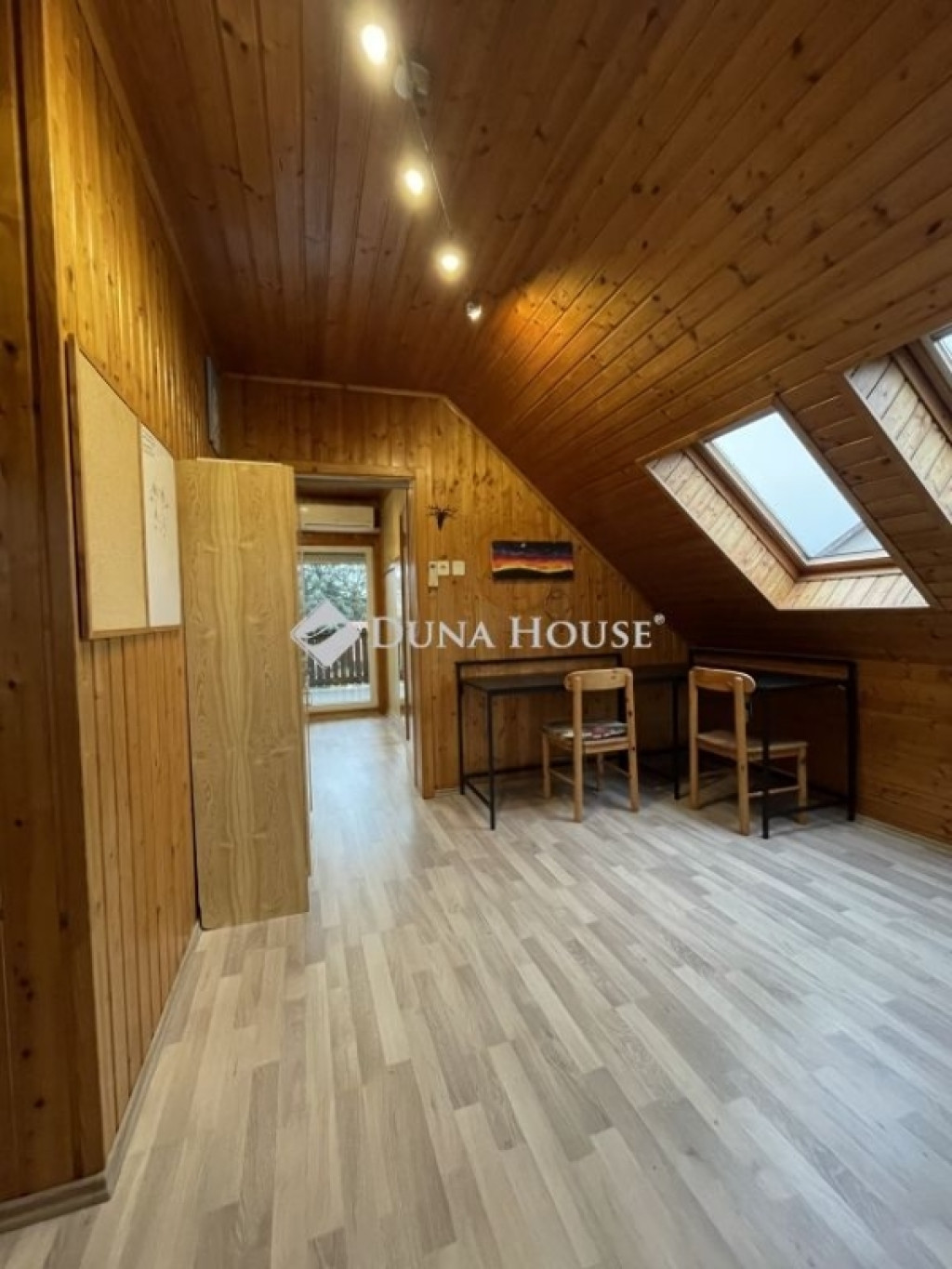 A tetőtérben egy erkélyes hálószoba, dolgozószoba, előtér és egy zuhanyzós fürdőszoba található.