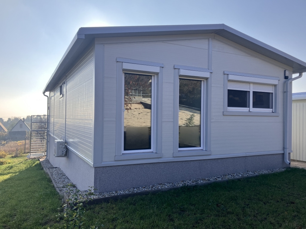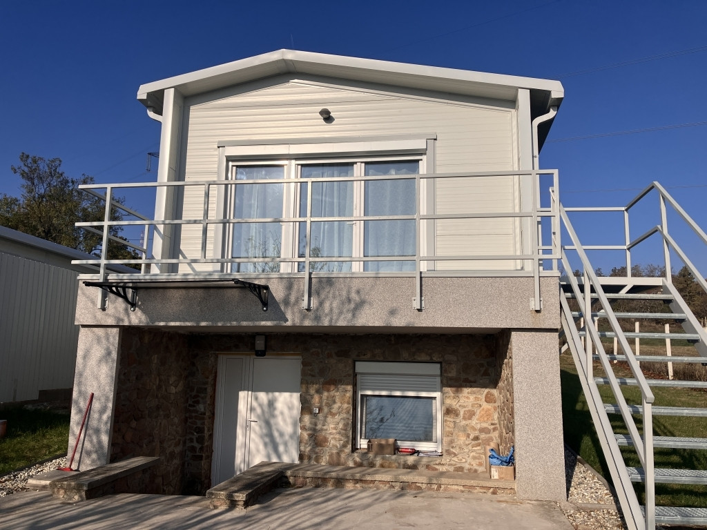 A ház 2024-ben épült, könnyűszerkezetes, fém szerkezetű szendvicspanelből.