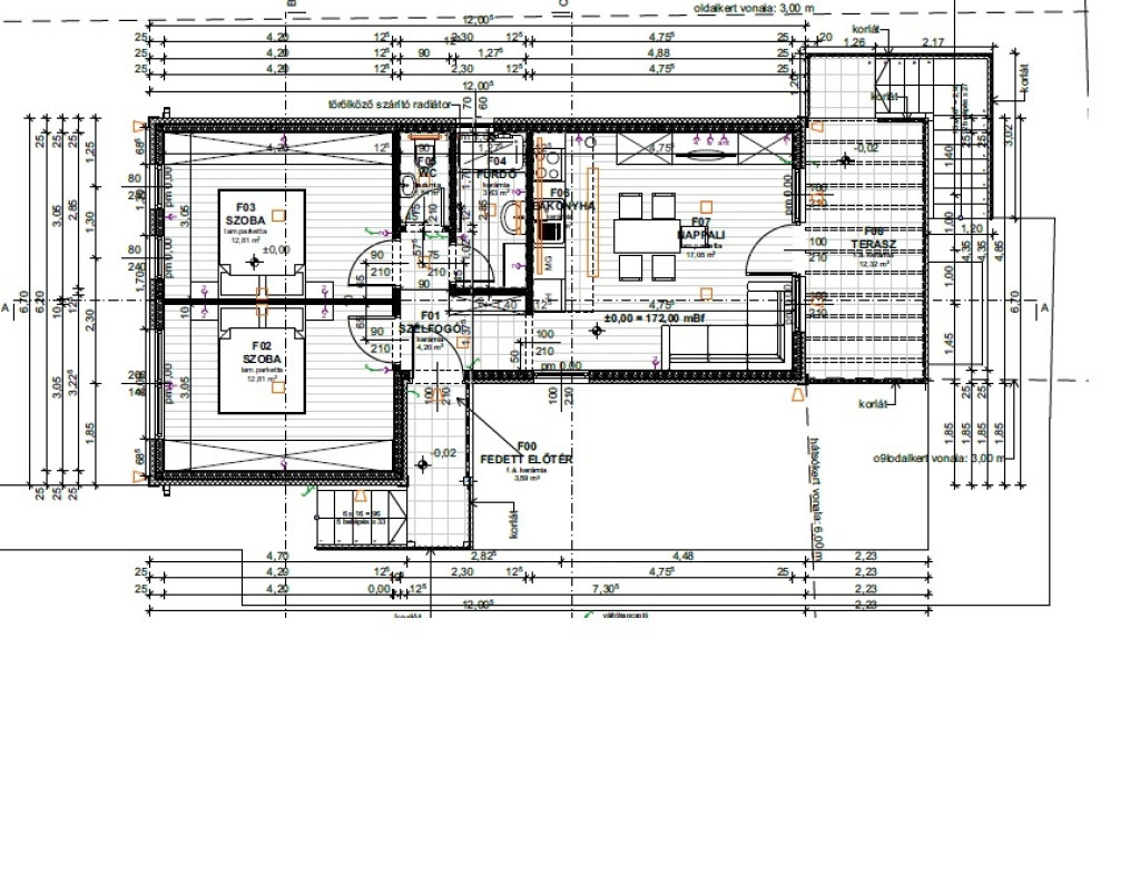 A lakótér:59,53 nm+ 10,81 nm terasz