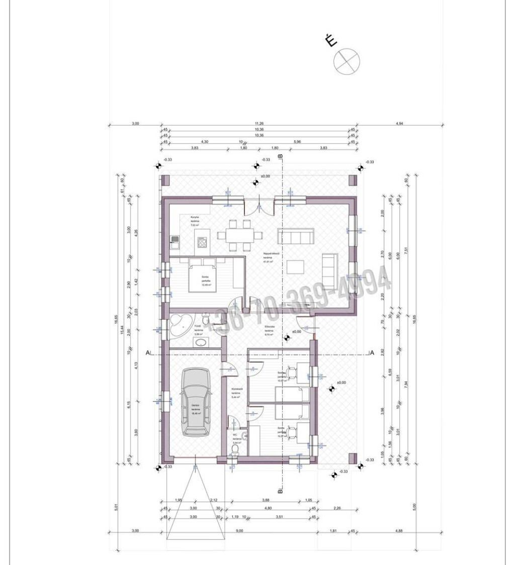 építési övezet szabadon álló, az épület 3 m-es oldalkerttel, 5 m előkerttel épül.