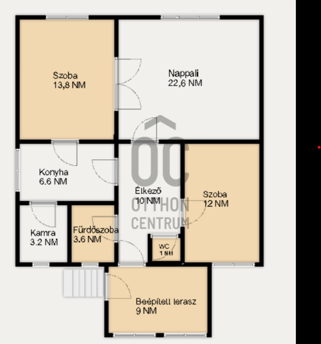 Helyiségek: konyha, étkező, fürdőszoba, külön WC, beépített terasz, pince