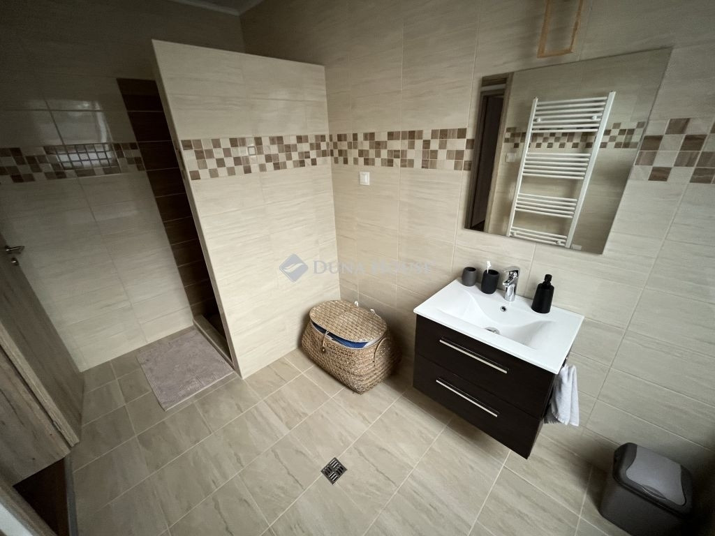 A fürdőszoba modern és elegáns, a legújabb trendeknek megfelelően tervezett. Az udvarban kialakított kert és fedett terasz lehetőséget nyújt kikapcsolódásra és a szabadtéri programokra, ahol a család és barátok együtt tölthetik el az időt.