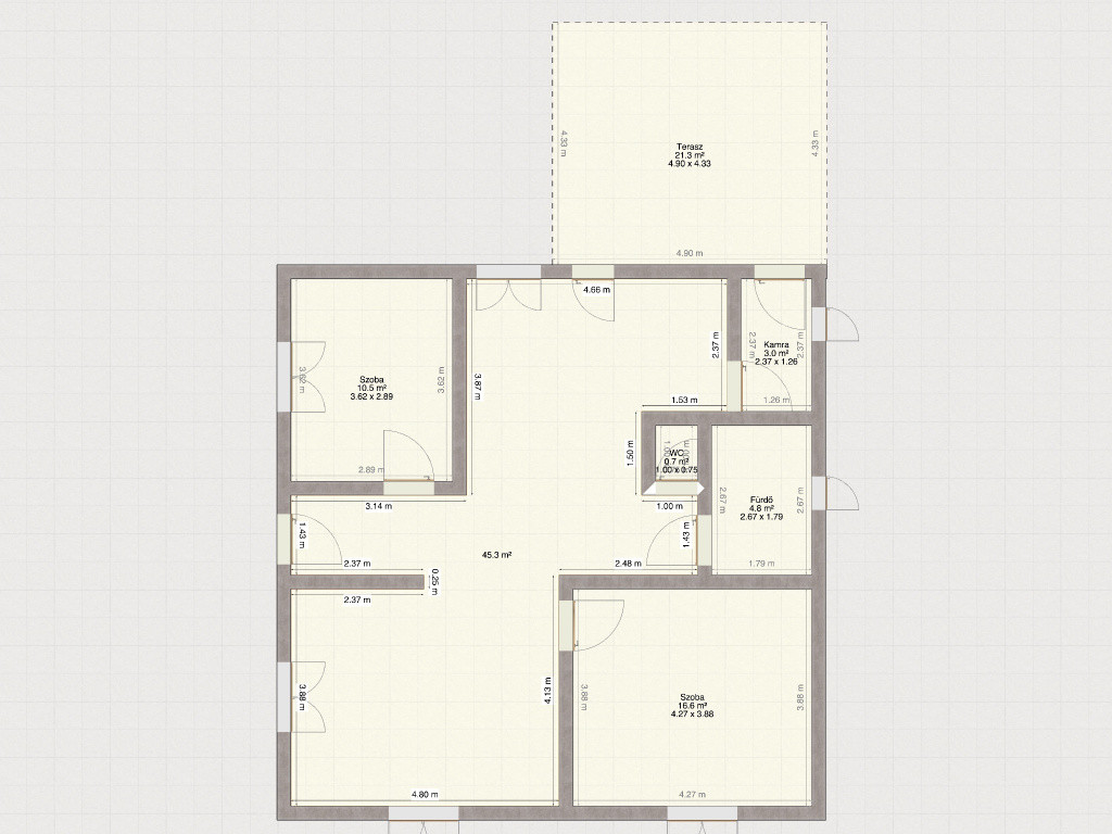 A lakótérbe egy tágas, 25 m²-es, fedett teraszról léphetünk, amely kiváló helyszíne a családi és baráti összejöveteleknek. A ház belső elrendezése rendkívül praktikus: a központi helyet egy világos, étkezős konyha foglalja el, melyből egy kamra is nyílik. Ezen kívül két kényelmes hálószoba és egy tágas, napfényes nappali biztosítja a család kényelmét.
