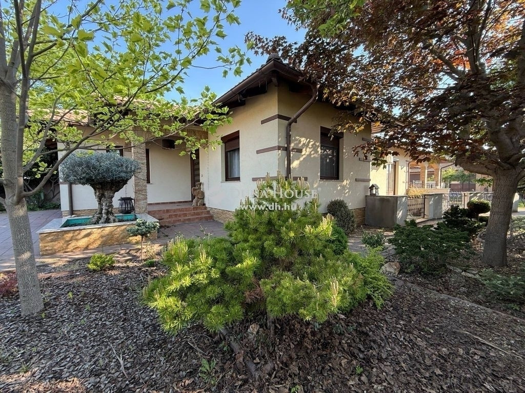 Eladó exkluzív családi ház Dabason – kiváló elhelyezkedés, energiatakarékos megoldásokkal/15,5 kW-os napelemrendszerDabason, a városközponthoz közel, mégis csendes környezetben kínálok megvételre egy kiváló adottságokkal rendelkező, 157 m²-es családi házat, 93 m²-es pincével, 110 m²-es dupla garázzsal és egy 40 m²-es fedett beállóval, 1170 m²-es, összközműves telken.Az ingatlan 2007-ben épült, masszív 30 cm-es Ytong falazattal, 5 cm-es szigeteléssel és betoncseréppel fedett tetővel. A ház elrendezése praktikus és tágas, minden részletében a kényelem és funkcionalitás jegyében épült.Főbb jellemzők:- 3 tágas hálószoba (egyik gardróbbal)- nagy amerikai konyhás nappali- 2 fürdőszoba + külön mellékhelyiség- háztartási helyiség és kamraA padlófűtés kondenzációs kazánnal, alternatív fűtési lehetőségként vegyestüzelésű kazán és 4 darab klímaberendezés a teljes komfort érdekében.Az ingatlan kiemelkedő energetikai adottságokkal rendelkezik:15,5 kW-os napelemrendszer gondoskodik a ház teljes vagy jelentős részbeni villamosenergia-ellátásáról, beleértve a fűtést, hűtést, háztartási gépeket, valamint akár elektromos autó töltését is – ez jelentős mértékben csökkenti az energiaköltségeket.További extrák:- saját szolárium a vételár részeként- ipari áram- riasztórendszer és kamerás megfigyelés- fúrt kút az öntözéshez- 110 m²-es, kétállásos garázs- 93 m²-es pince tárolási lehetőséggel Az ingatlan lokációja kiváló: a közelben megtalálható minden fontos intézmény, mint óvoda, iskola, gimnázium, orvosi rendelők, SZTK, valamint bevásárlási lehetőségek (Lidl, Spar, Rossmann, stb.).Ez a ház ideális választás lehet azoknak, akik modern, biztonságos és energiahatékony otthont keresnek, frekventált, mégis nyugodt környezetben.További információért vagy megtekintés egyeztetéséhez kérem, keressen bizalommal!