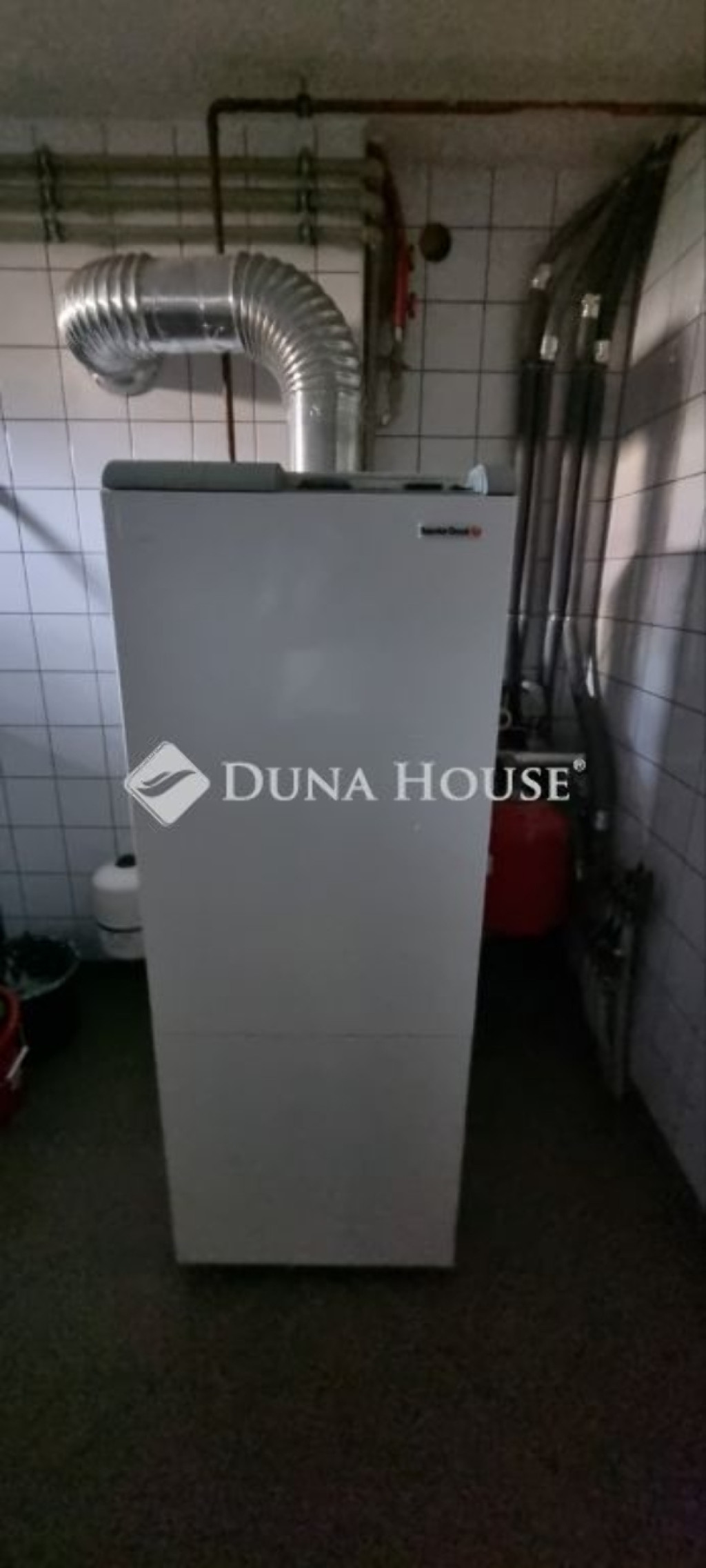A fűtése Saunier Duval álló, forróvíz tárolós gázkazánnal, padlófűtéssel és radiátorokkal megoldott.