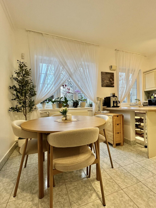 A 60 m²-es szuterén valódi családi „háttérbázis”: nemcsak az autó kényelmes elhelyezésére alkalmas, hanem bőséges tárolóként is funkcionál – babakocsi, bicikli, szezonális holmik mind könnyedén elférnek. A gépészet (gázkazán, 1000 literes puffer tartály, vegyestüzelésű kazán) itt kapott helyet, a lakótérbe pedig innen is közvetlen feljutás van.