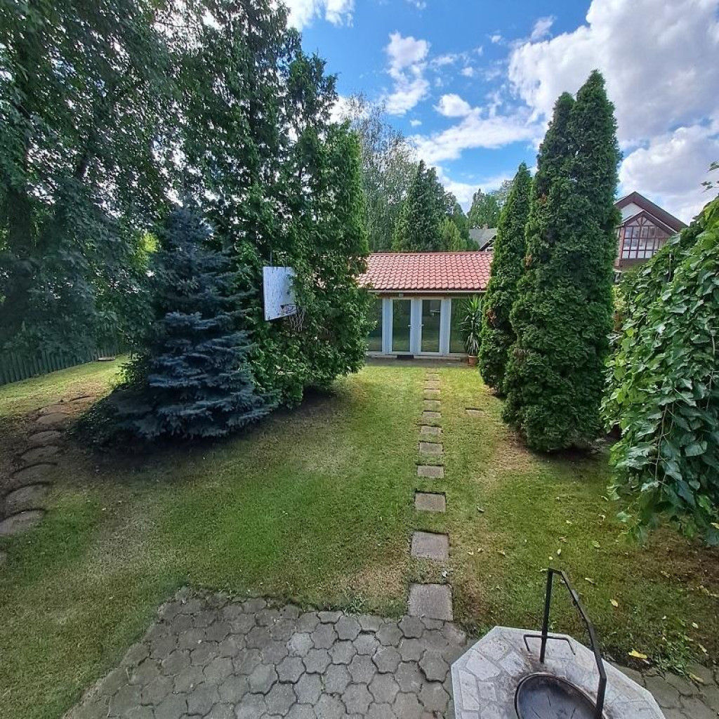 Az udvar parkosított, fás, automata esőztető öntözőrendszerrel, fúrt kútról üzemeltetve.