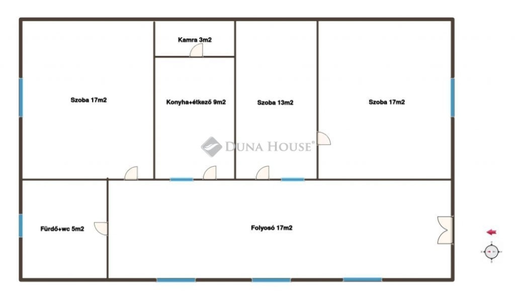 A ház jelenleg 3 szobából, konyhából, fürdőszobából és egy napfényes folyosóból áll, melynek elrendezése jól alakítható, könnyen a mai igényekhez igazítható.