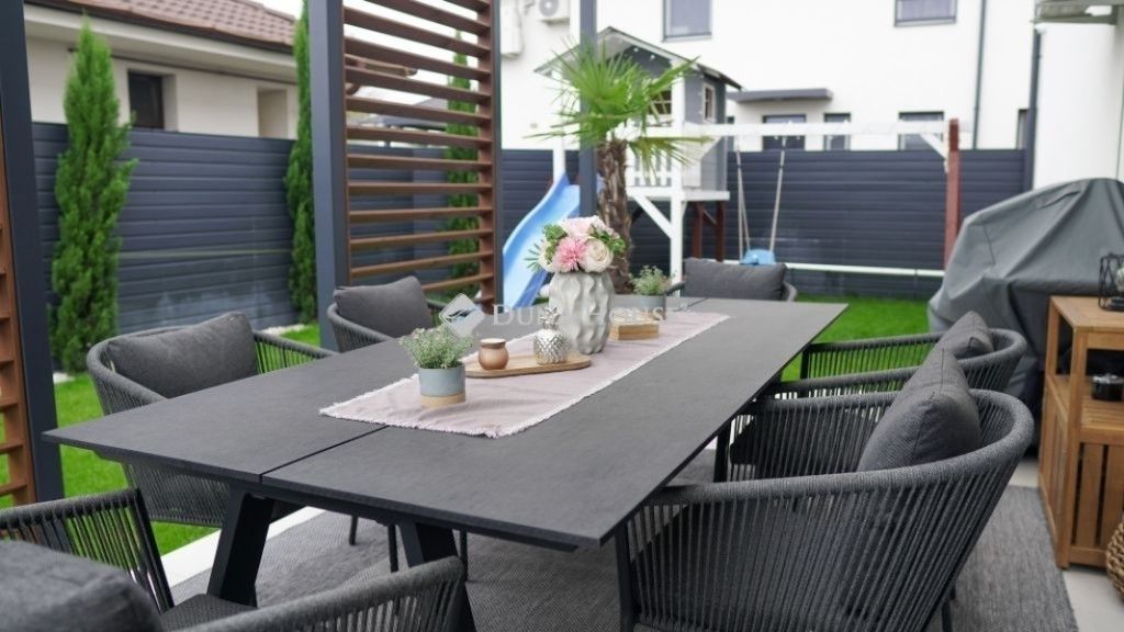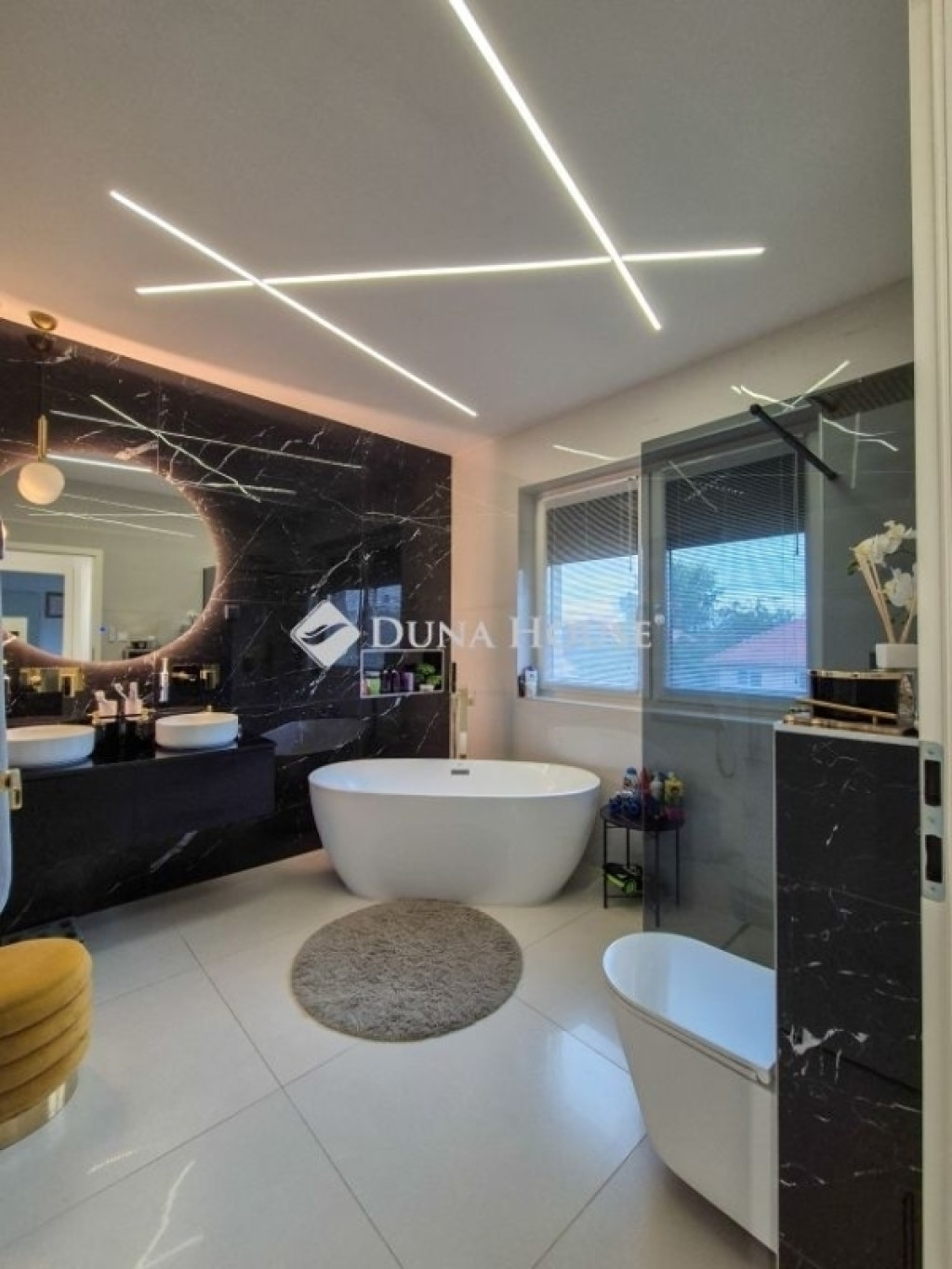 A ház minden részlete a modern élet kényelmét tükrözi: elektromos zsalúzia, alumínium redőnyök, távirányítható kapu, videókaputelefon, CCTV rendszer, automata öntözőrendszer, fűthető garázs, Gree inverteres klímák - mindez azért, hogy Önnek csak élveznie kelljen a gondtalan hétköznapokat.