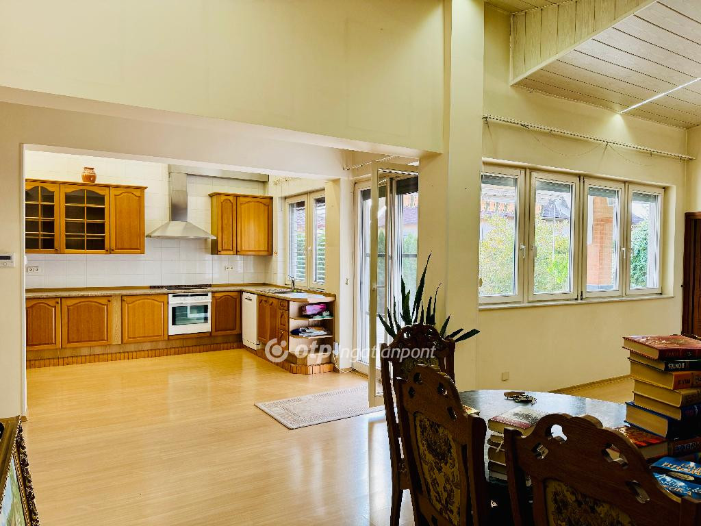 Ez a gyönyörű, egyedi megjelenésű családi ház gondosan parkosított udvarral és igényesen kialakított élettérrel várja új lakóit. A kertvárosi elhelyezkedés garantálja a csendet és a friss levegőt, miközben minden fontos szolgáltatás karnyújtásnyira elérhető.