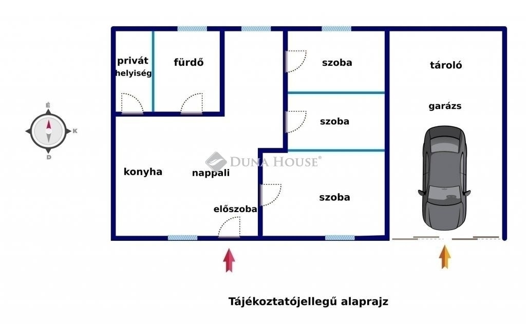 - nappali Amerika konyhás, 3 szoba, , fürdőszoba, wc, előszoba, közlekedő