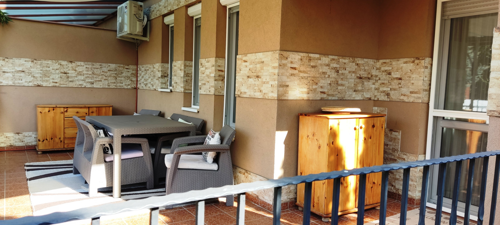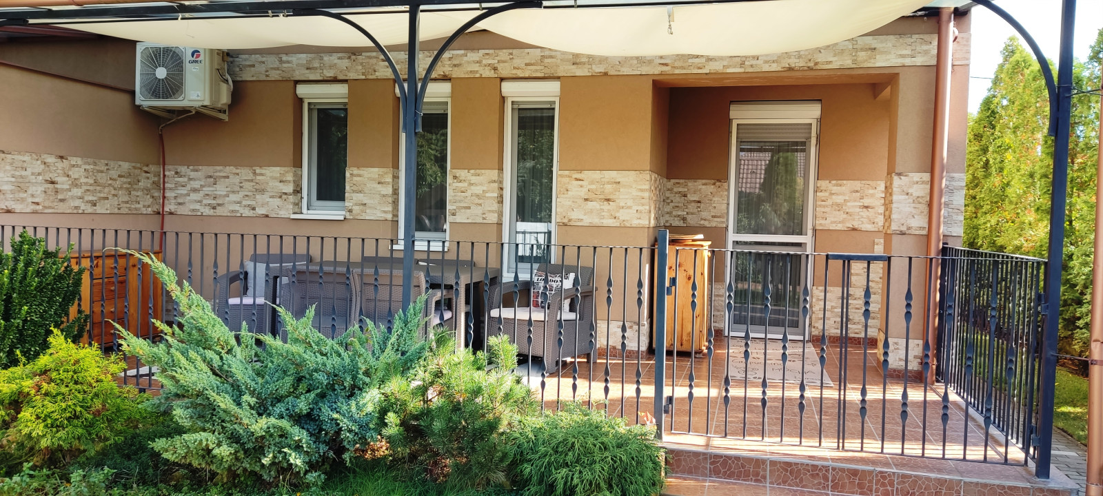 Debrecen Homokkerti Olajfa lakóparkban 10 éves mediterrán ház 5 hálószobával 2 generáció részére is alkalmasan eladó. Amerikai konyhás nappalival, 2 nagy fedett terasszal, garázzsal és kocsibeállóval, a kertben kemencével és bográcsozóval igazán ideális otthon. 2 fürdőszoba, spájz, gardróbszoba teszik még kihasználhatóbbá a tereket. Extrák:automata öntöző fúrott kútról, 7,5 KW napelem, klímák, 12 000 Ft/hó gázszámla. 10 cm szigetelés és a benapozottság biztosítja a rezsivédelmet. Csendes ház, jószomszédi környezettel.