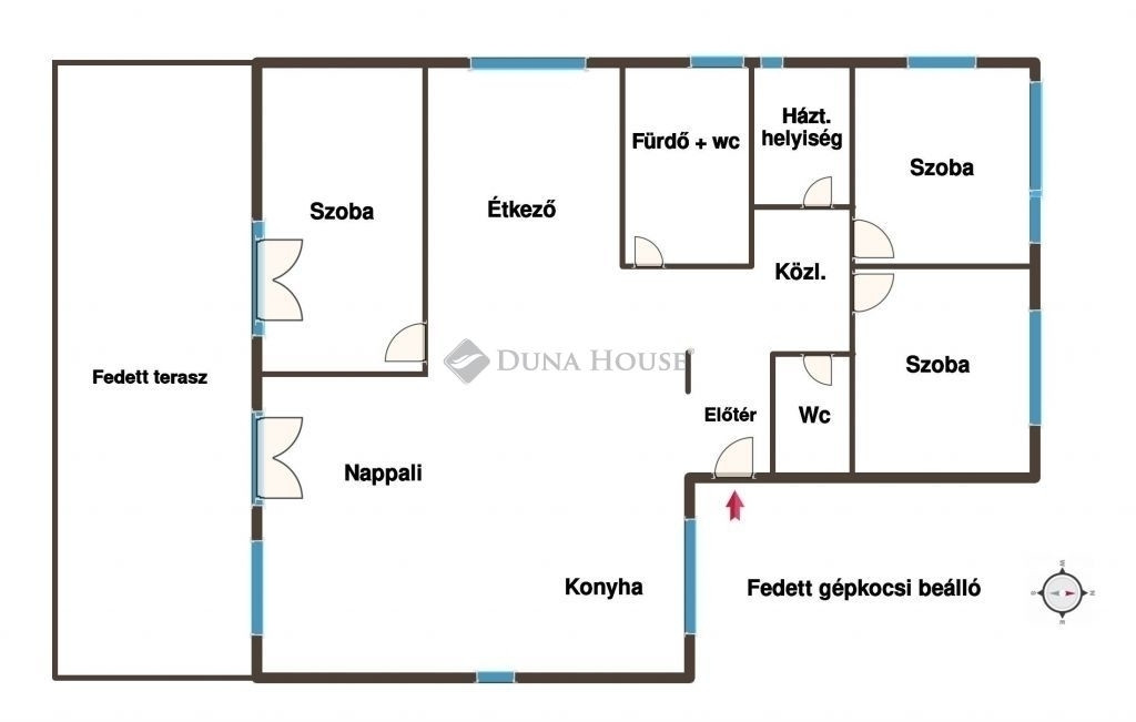 - a ház alapterülete: 141 nm (lakóterülete: 115 nm + fedett gépkocsi beálló: 22 nm + fedett terasz: 29 nm)