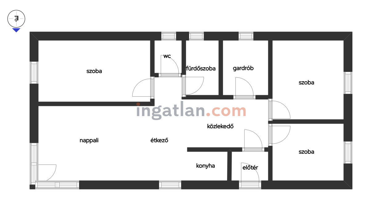 - 130 nm tágas lakótérben nagyon praktikus alaprajzi elosztás, hiszen a nagy nappali + amerikai konyha mellett három különnyíló, jól rendezhető egész szoba és egy gardrób szoba is rendelkezésre áll