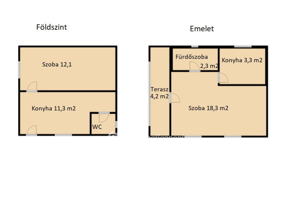 -48 m2-es 2 szobás, 2 szintes ház szintenként külön bejárattal