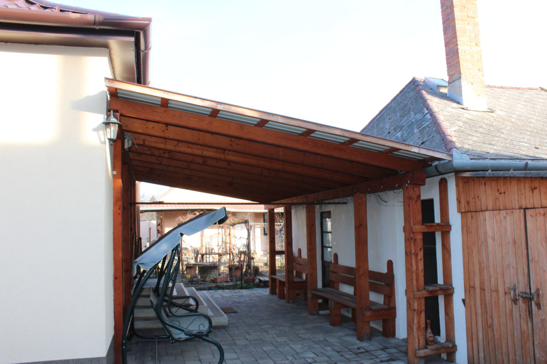 A házhoz tartozik kb. 16 m2-s különálló konyha. A konyha mellett, mögött, tárolók, garázs, pince, hátul ólak, egyéb helyiségek.