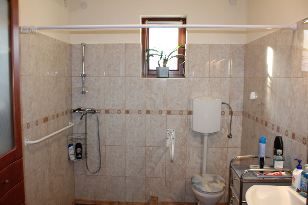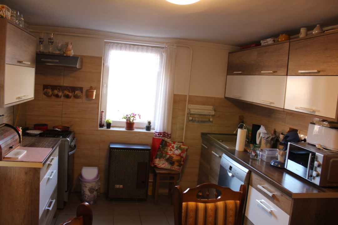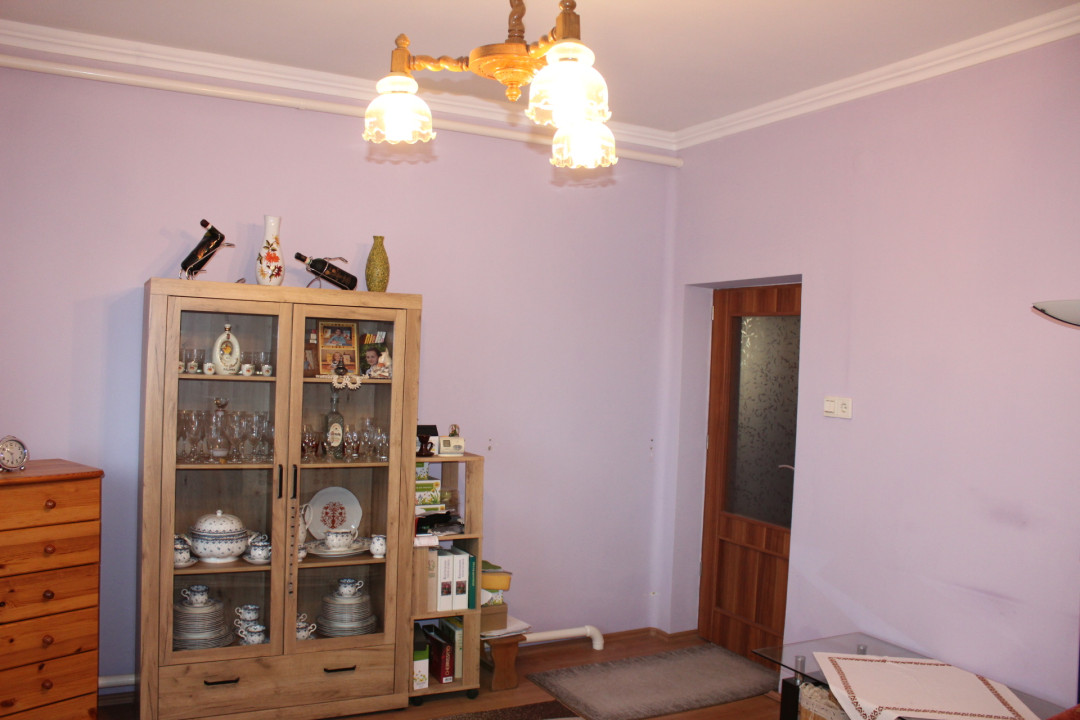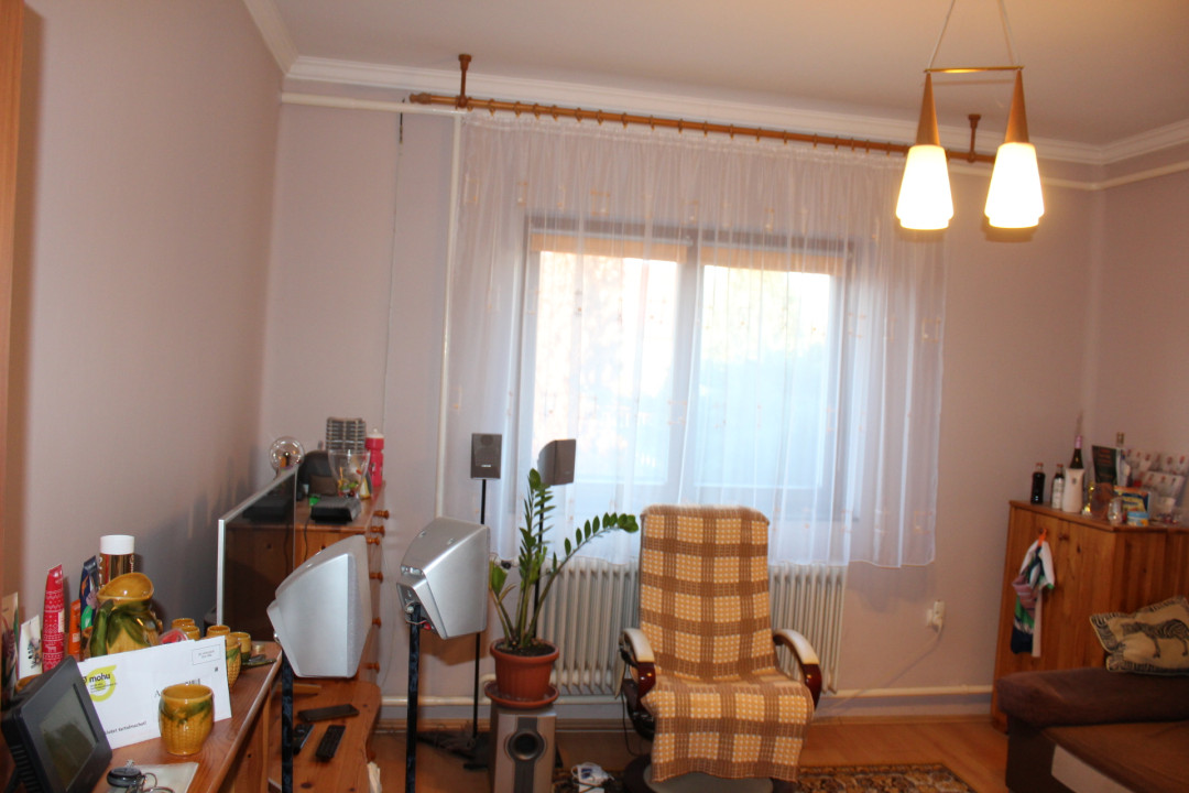 Helyiségei : előszoba + 2 nagy szoba + 1 kisebb szoba ( ami most gardrób, régebben ez volt a konyha ) + zuhanyzós fürdőszoba, wc-vel + fedett terasz + konyha.