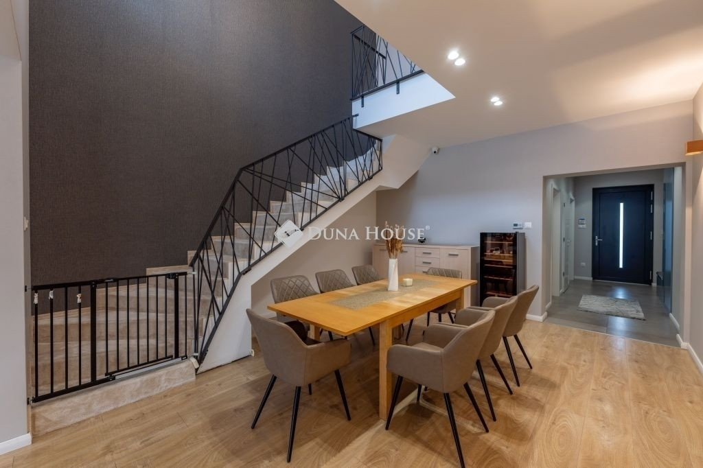 Exkluzív ajánlat Hatvan utcai kertvárosban prémium kivitelezésű, kulcsrakész ikerház eladóDebrecen egyik legkeresettebb kertvárosi övezetében eladásra kínálunk egy 2017-ben épült, igényes, belső kétszintes, 206 m²-es prémium ingatlant.Főbb paraméterek:-Telekméret: 650 m², parkosított, automata öntözőrendszerrel, játszóterasszal, szabadtéri konyhával és pihenőkerttel-Lakótér: 206 m²-35 m²-es terasz (11 m² fedett rész )-34m²-es fűtött garázsFöldszint (150 m²)Az épület földszintjén fűtött dupla garázs gépészeti térrel, dolgozószoba, vendég-WC és háztartási helyiség, étkező, szülői lakrész: hálószoba + gardrób + saját fürdő, napfényes amerikai konyhás nappali, gépesített konyha, kamra, közvetlen kijárat a teraszra kapott helyet.Emelet (56 m²)Az épület emeletén kényelmes lépcsőfeljáró, külön gardróbszoba, 2 db szoba és egy modern fürdőszoba került kialakításra.Műszaki tartalom:-Porotherm 30NF téglafalazat + Rockwool kőzetgyapot + BACHL PIR lapostető szigetelés kimagasló hőtechnikai érték-Padló- és falfűtés, mennyezethűtés, GREE klímatechnika-Kondenzációs gázkazán + melegvíz-tároló-Rejtett tokos alumínium elektromos redőnyök, szúnyoghálókkal-Beépített vízlágyító, központi porszívó, kamera- és riasztórendszer előkészítve/kivitelezve-Lapostető kialakítás opcionálisan tetőterasz létesíthetőRendezett szomszédság, csendes utcák, mégis kiváló infrastruktúra.Az épülethez tartozó kert 2023-ban teljes megújuláson esett át: automata öntözőrendszer, játszó rész és hangulatos szabadtéri főzőhely és pihenőkert teszik teljessé a családi életet.Ha Ön is ilyen otthonra vágyik, ahol kulcsra kész állapot, modern technológia és kertvárosi luxus találkozik, hívjon bizalommal.