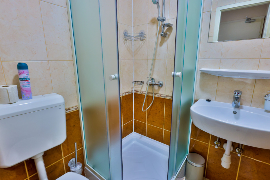 -földszinten 1 db 4 ágyas szoba, külön helyiségben fürdőszoba és WC-vel