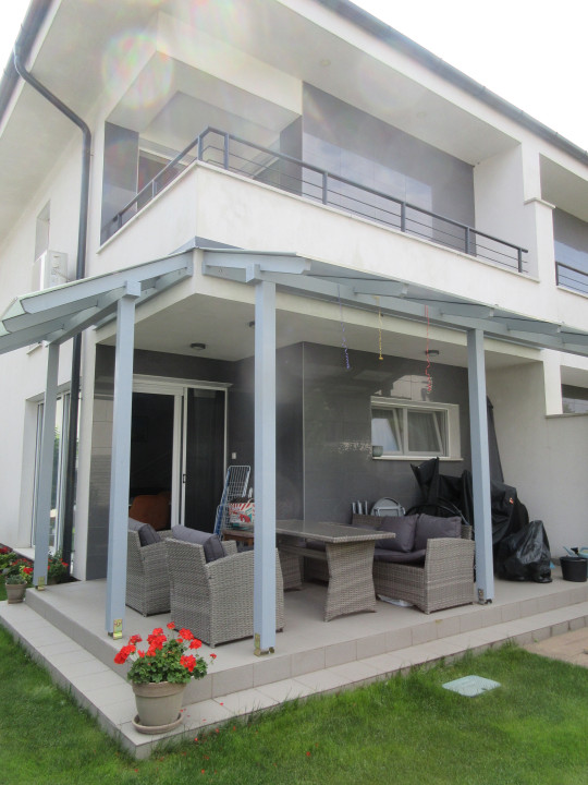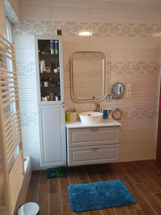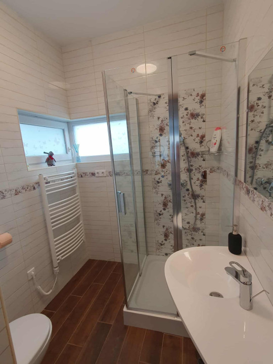 -Az emeleten 3 külön nyíló szoba (12nm,11nm,10nm), gardróbszoba (8nm), fürdőszoba (káddal, toalettel), 2 erkély, közlekedő. Az ingatlan napos, világos rendkívül jó elosztású, élhető terekkel rendelkező, kiváló tájolású , fiatalosan modern ikerház.