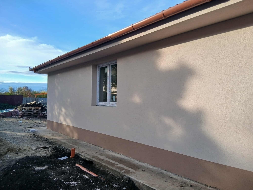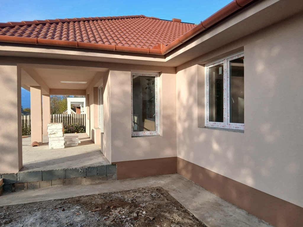 Debrecen - NI Hungary Kft közelében, Kishegyesi útból nyíló csendes utcában nappali+3 szobás új építésű családi ház ELADÓ!A családi ház földszintes, mely magában foglal egy központi teret, ahová elhelyezésre kerül tágas nappali és étkező, melyhez közvetlenül csatlakozik a konyha. A nappaliból közvetlen kijárási lehetőség van a fedett és abból a nyitott teraszra.Jellemző az épületre a szobák tagoltsága, ennek megfelelően a nappali a központi traktusban, a hálószobák az épület hátsó és az oldalsó traktusában vannak kialakítva.Az utcafront felőli épületrészben lett elhelyezve az épület részét képező garázs, melyet az előszobából is meg lehet közelíteni.Fűtés és meleg víz ellátás kondenzációs gázkazánról lesz biztosítva. A hűtést a nappaliban és a 3 db hálószobában hőszivattyús inverteres MULTI SPLIT berendezés biztosítja. A berendezések a hűtés mellett a fűtés funkciót is ellátják.A meghirdetett ár kulcsra kész állapotra vonatkozik.- teljes építési folyamat az alaptól a tetőig, fő és válasz falak megépítését a héjazat elkészítését- az épület körül 1 m szélességben járda burkolat- az épület gépészeti, villanyszerelési vezetékek kiépítése, fűtés rendszerhez kapcsolódó radiátorok, padlófűtés és a kazán elhelyezése- homlokzati szigetelés és nemes vakolat készítése, belső falak vakolása fehér festése.- meleg és hideg burkolatokat- szanitereket- villanykapcsolókat és lámpatesteket- belső ajtókatAz építkezés várható befejezés 2025. 12. hónap.Bővebb információért forduljon hozzám bizalommal!