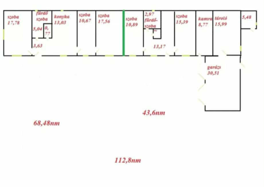 Az első lakrész 68. 48 Nm-es, felújított és azonnal költözhető. Elosztása a következő: